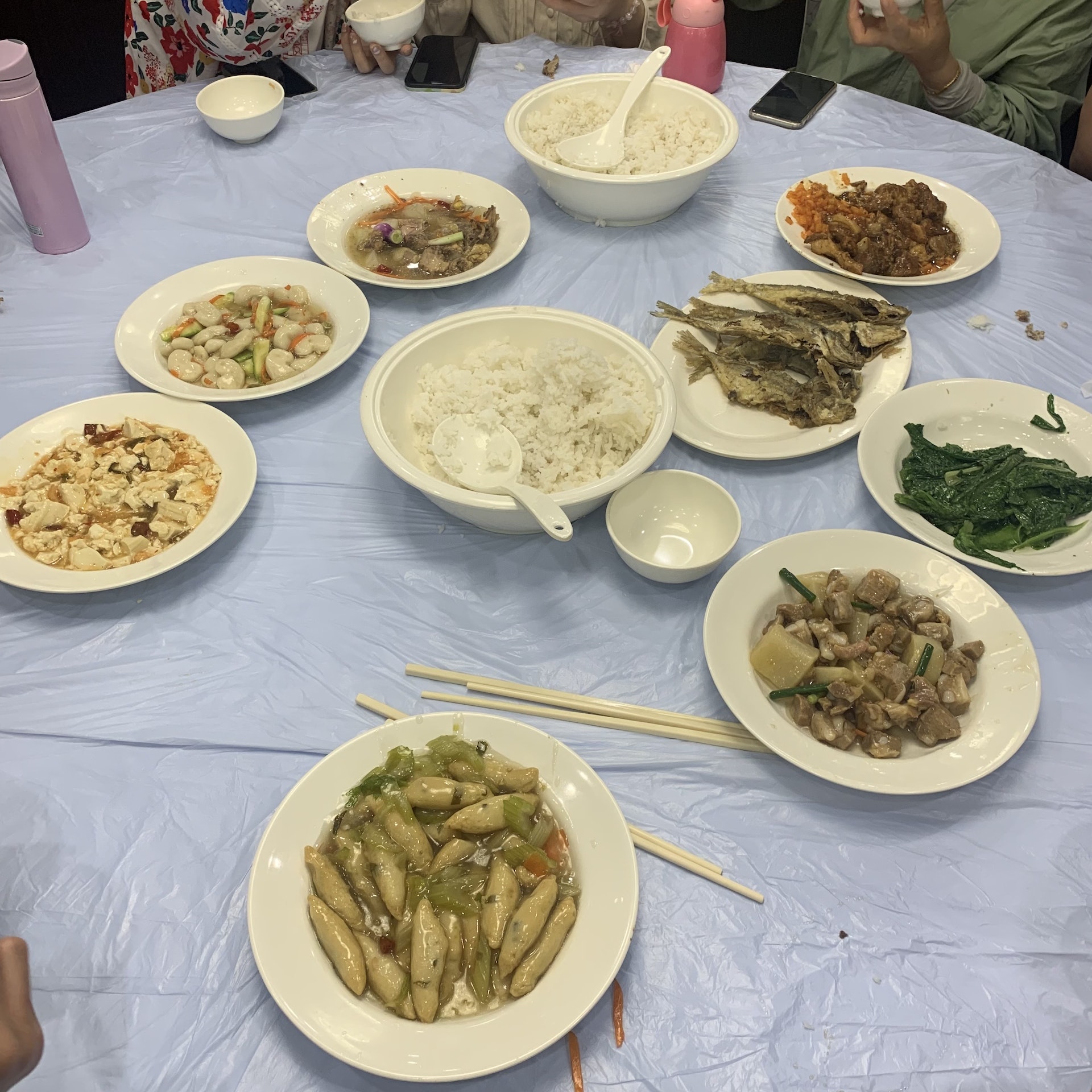 午餐共八餸,兩個大碗飯。(香港01記者攝)