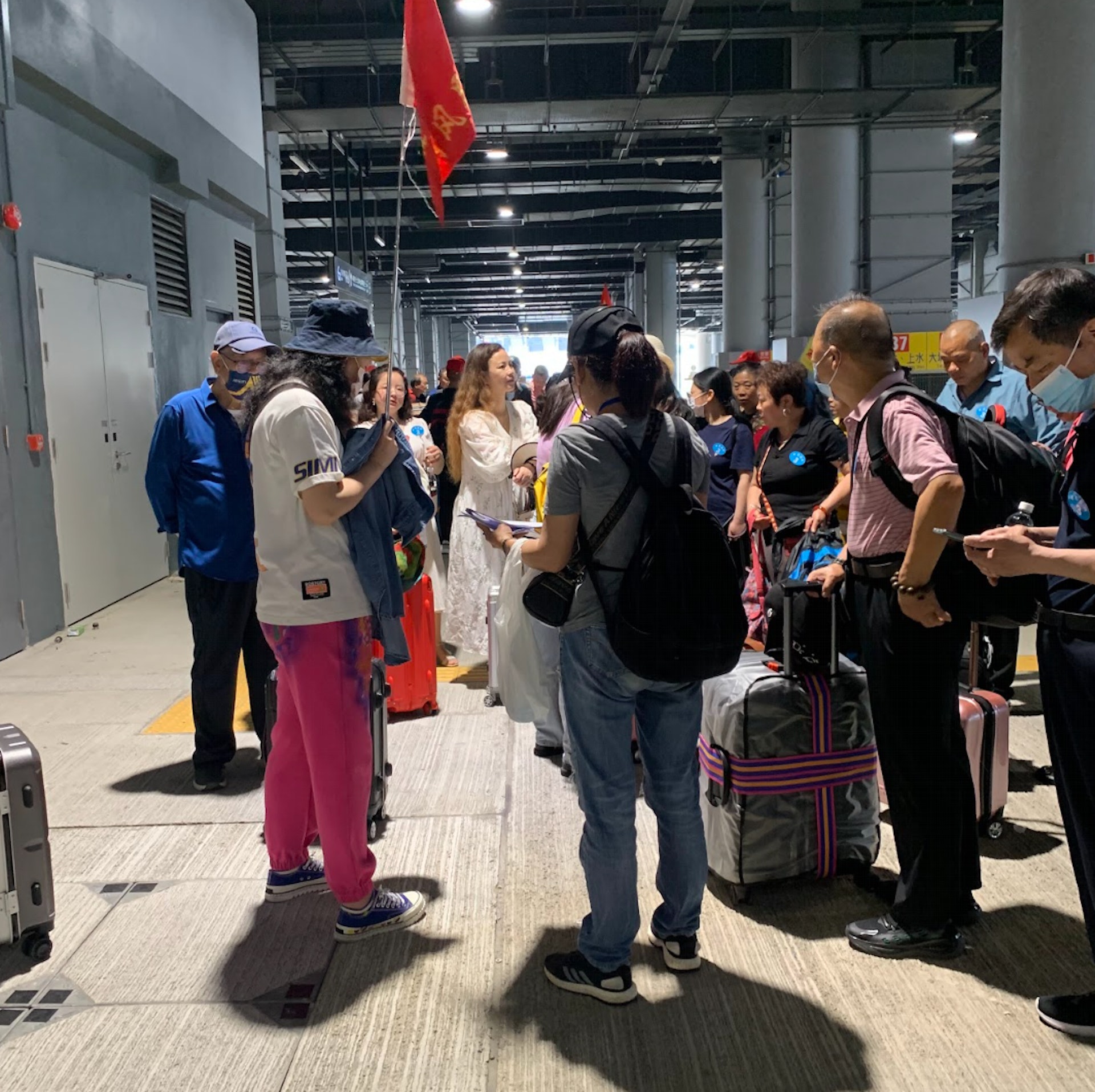 該散拼團在深圳蓮塘口岸集合有43人,香港首站黃大仙集合者多來自珠海,有11人,整個「散拼團」共有64人,幾乎擠滿一輛旅遊大巴士,有兩名超過80歲的長者和一名孩童。香港首站為黃大仙,沿途上導遊會講解香港的地標和關於「丁屋」制度等背景介紹。