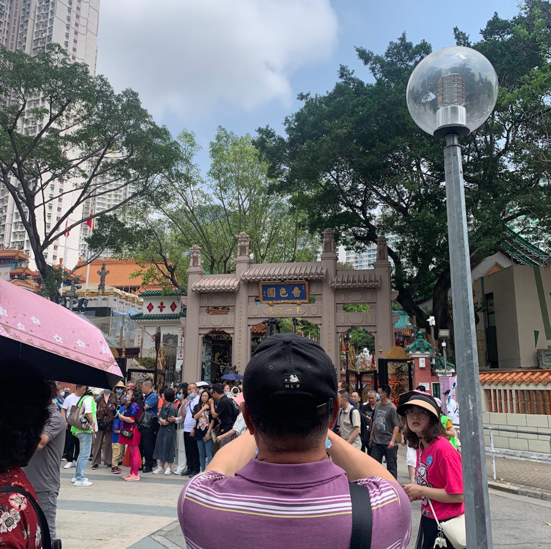 ; Y' s1 Y H$ e* V, |, D因旅行團行程多相似,幾個熱門景點如黃大仙、土瓜灣、西九文化區都擠滿了人,旅客上下旅遊巴的環境都十分擁擠。(香港01攝)