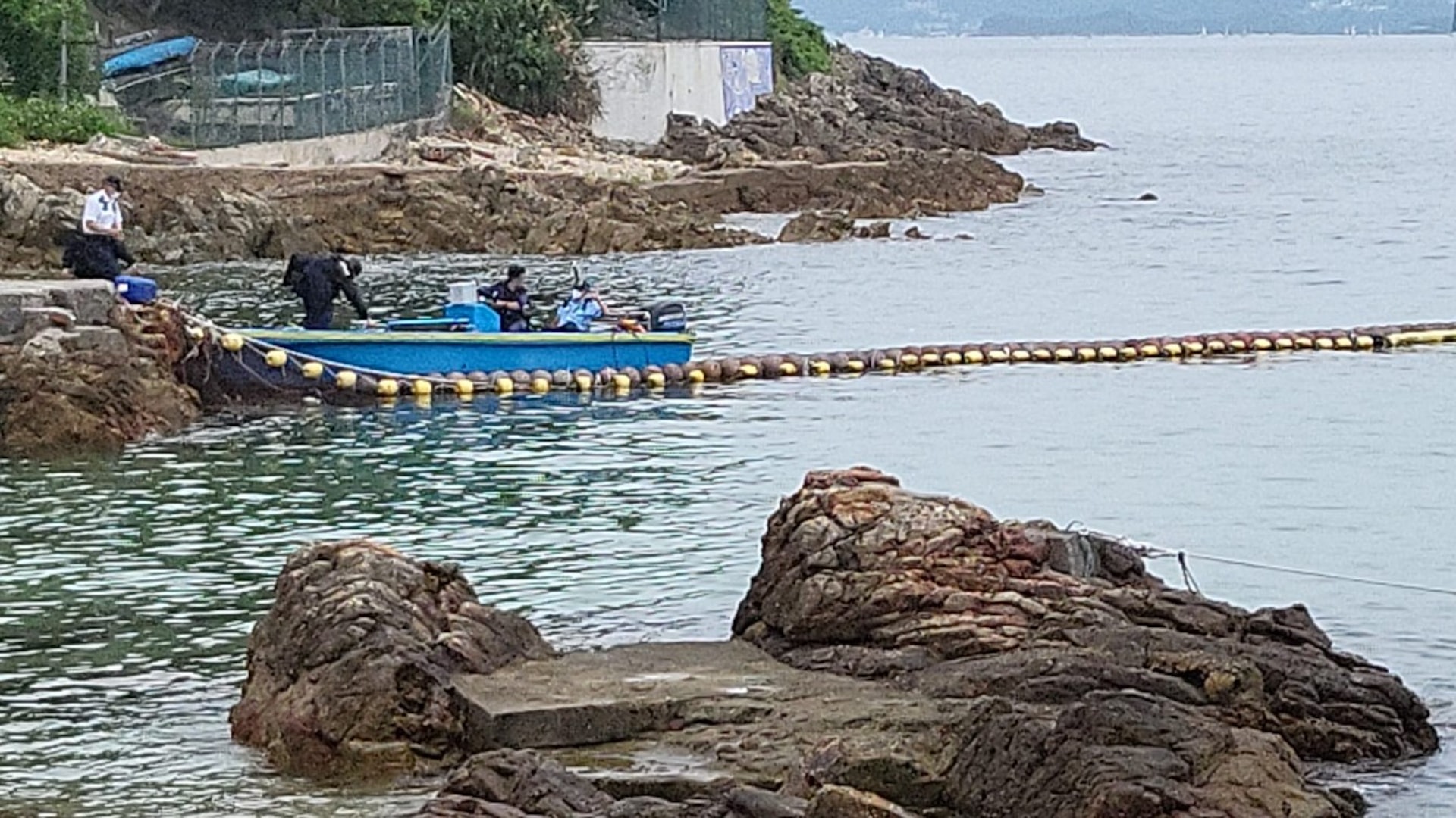 2名漁民正在現場協助警方調查,二人均操流利普通話,身上沒有身份證明文件。(翁鈺輝攝)
