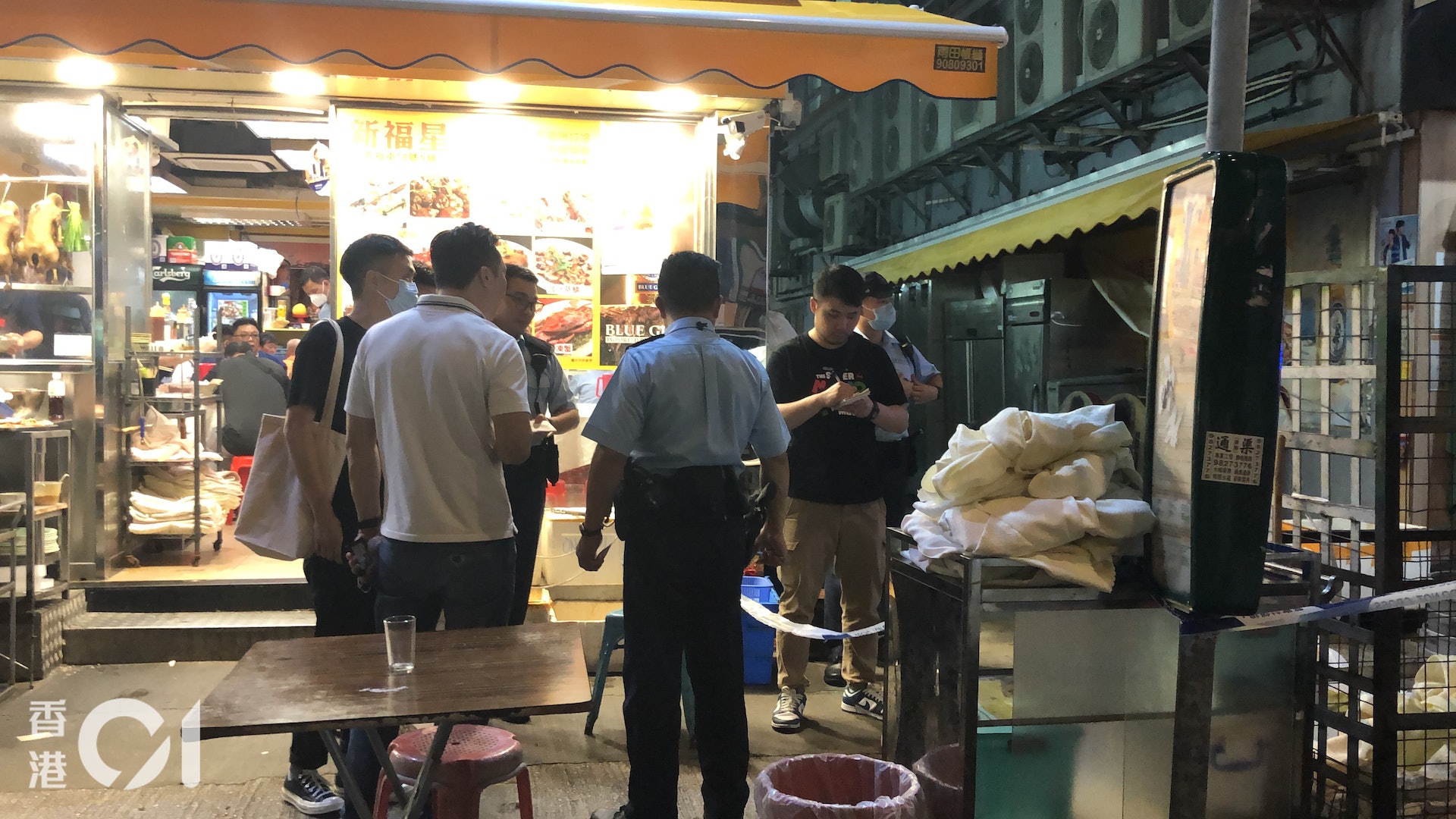現場消息稱,疑兇施襲後則向教育路方向逃去,沿路亦遺有血迹,警員封鎖現場蒐證。(林振華攝)tvb now,tvbnow,bttvb7 v. {3 j+ g0 [