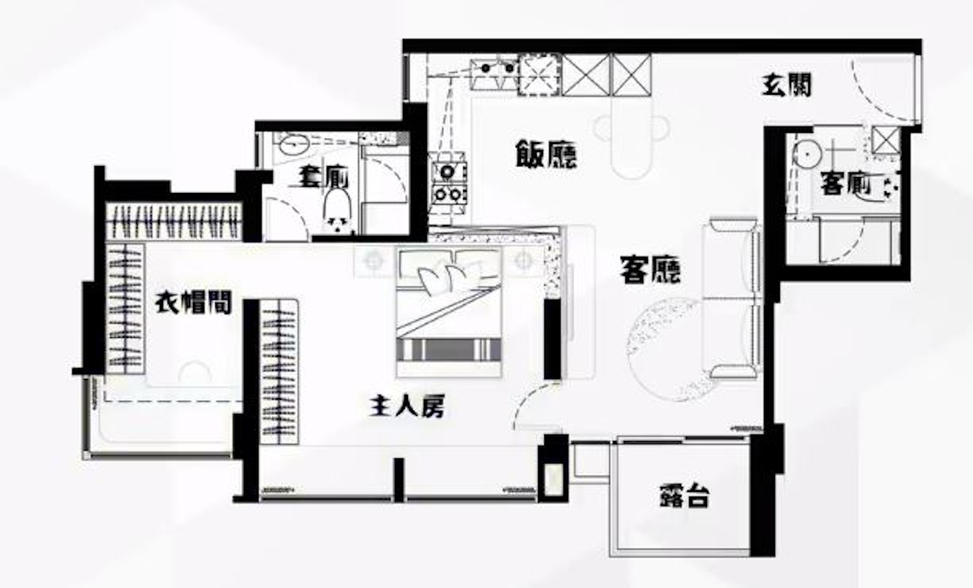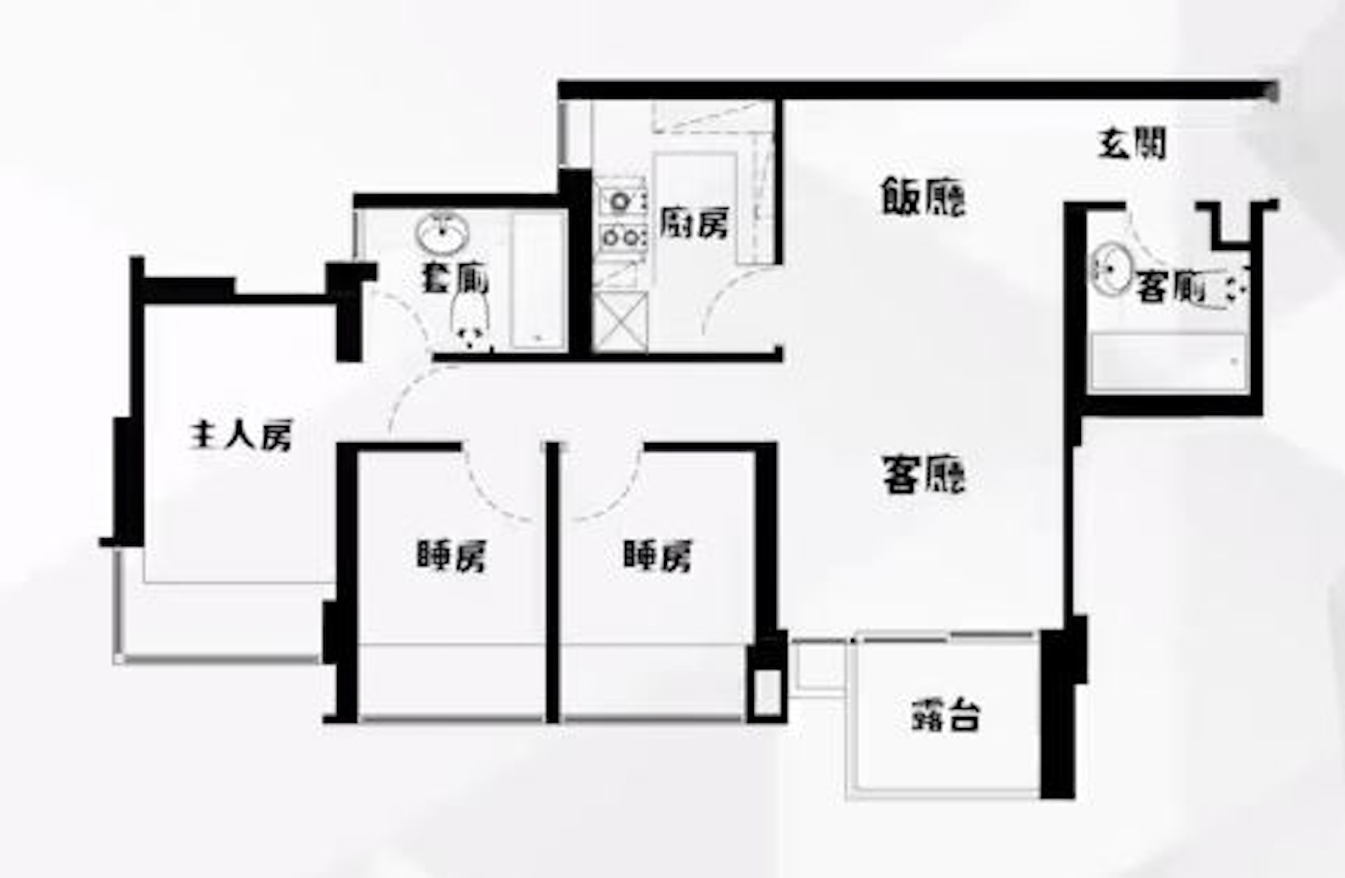 j- x) d% y/ f \0 V8 R. k, e涉事單位裝修後的平面圖。(網上影片截圖)5 V4 i; W2 C' Y/ t! v0 B