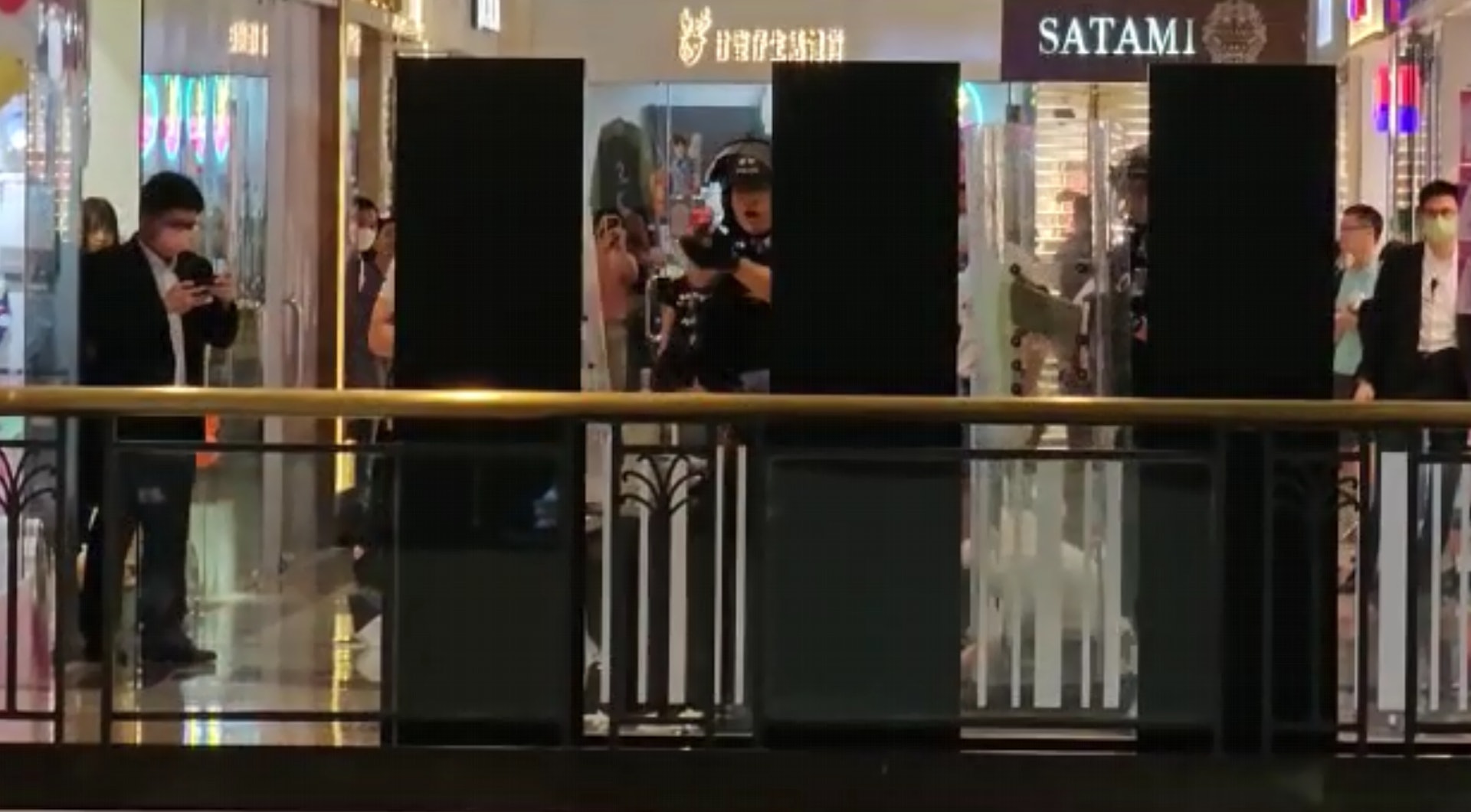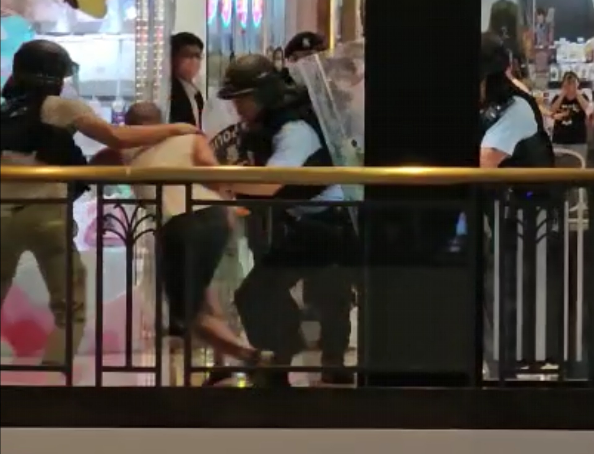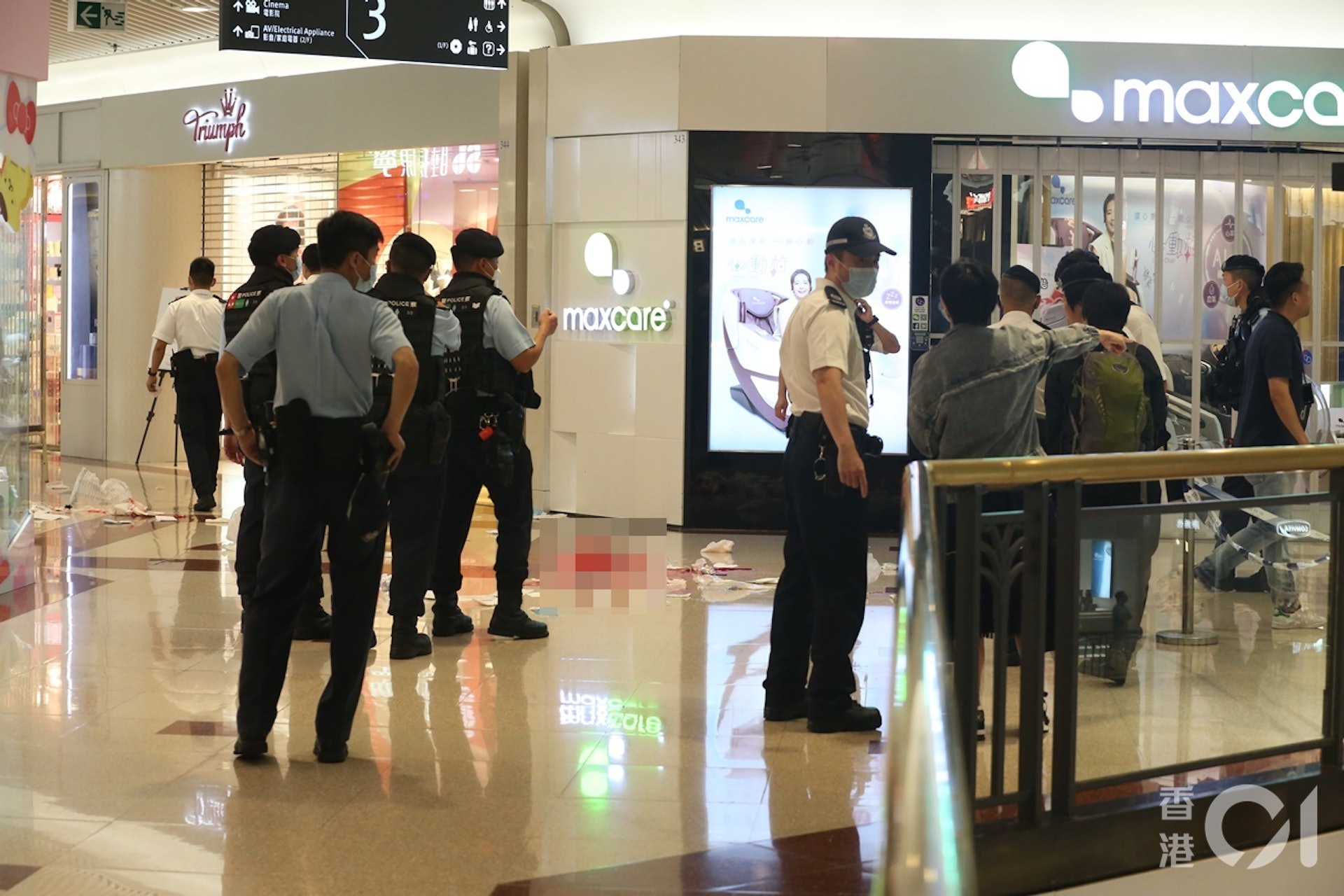 網上流傳片段亦見,案發後疑兇一直站在商場圍欄邊,一臉冷漠凝視警員,警員則手持盾牌喝令他放低刀,其後懷疑用胡椒水槍將他制服在地。