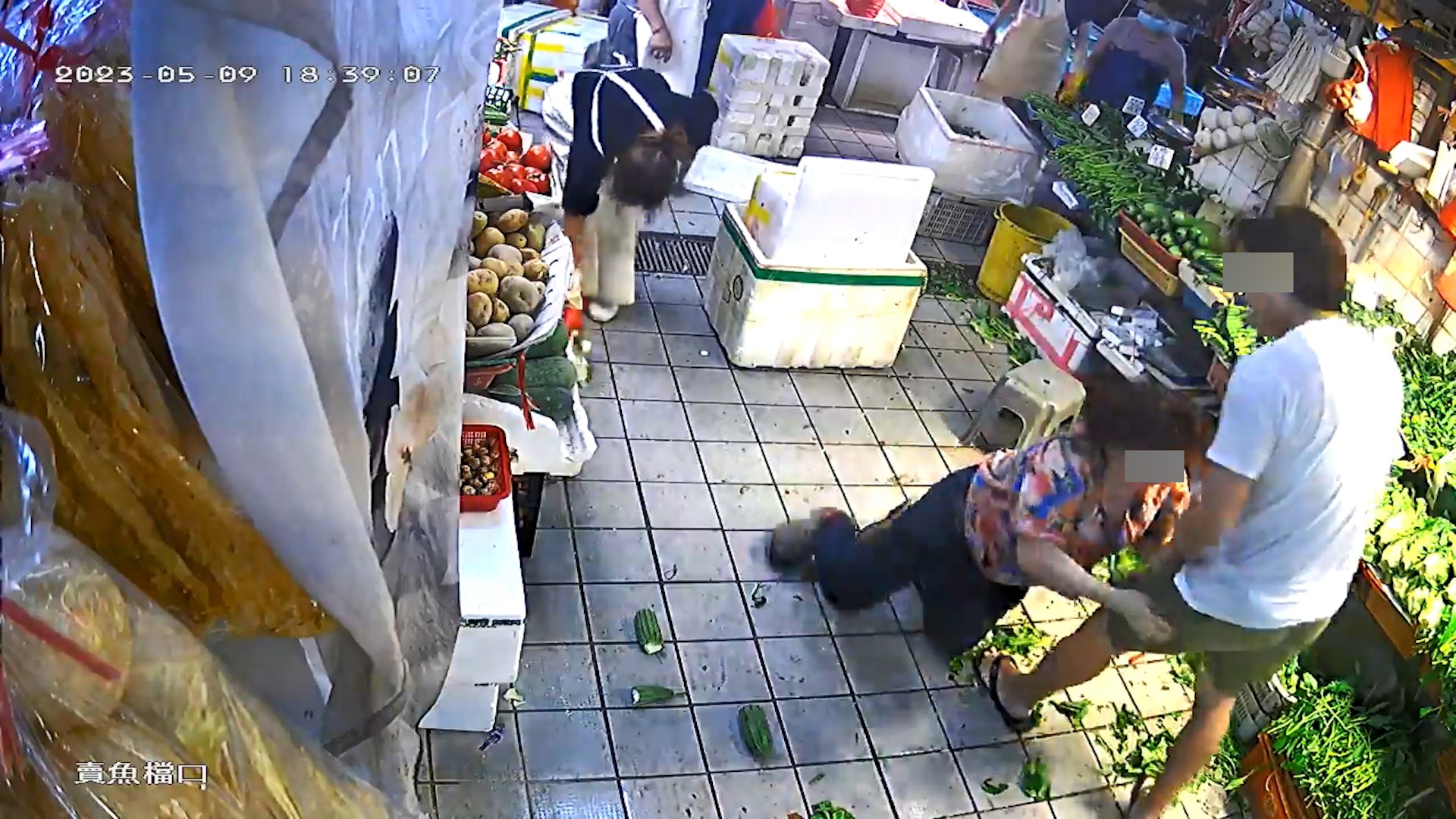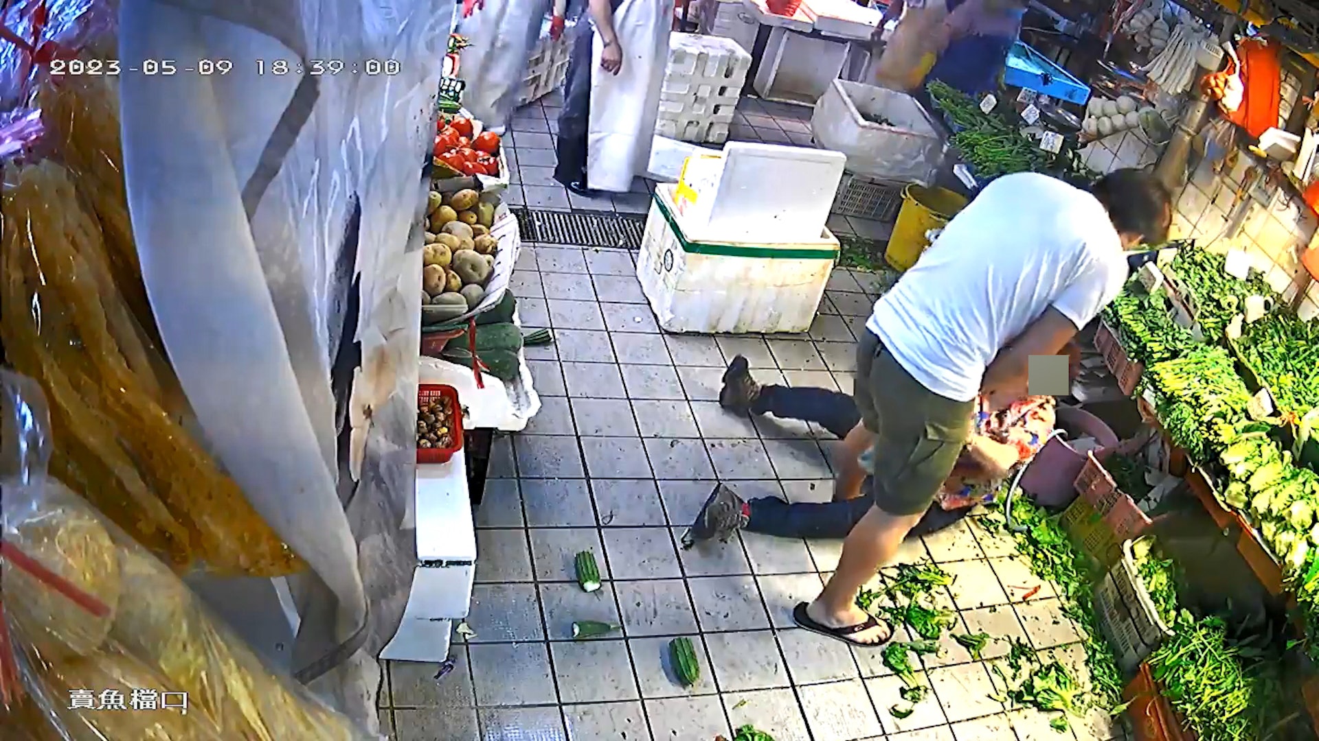 事發片段相信是由其中一間店舖的閉路電視拍攝。於昨日(6月3日)中午被上傳到多個社交網站群組。就該閉路電視片段所見,事發於5月,一名婦人在街市菜檔路中心,將一車發泡膠箱掉落地上,但她掉落第二個發泡膠箱時,蓋子砸到旁邊買菜的男子腳上,男子一腳將她的發泡膠箱踢走。大嬸將手上發泡膠箱放在男子腳邊,前去執被踢開的箱時,男子一手將她放下的發泡膠箱打飛,喝鬧「企喺度你仲係咁整埋嚟」。雙方因而展開激烈打鬥,更因婦人被推跌地上,最終出手「偷桃」反擊。7 y- [7 U/ s! U, q5 }