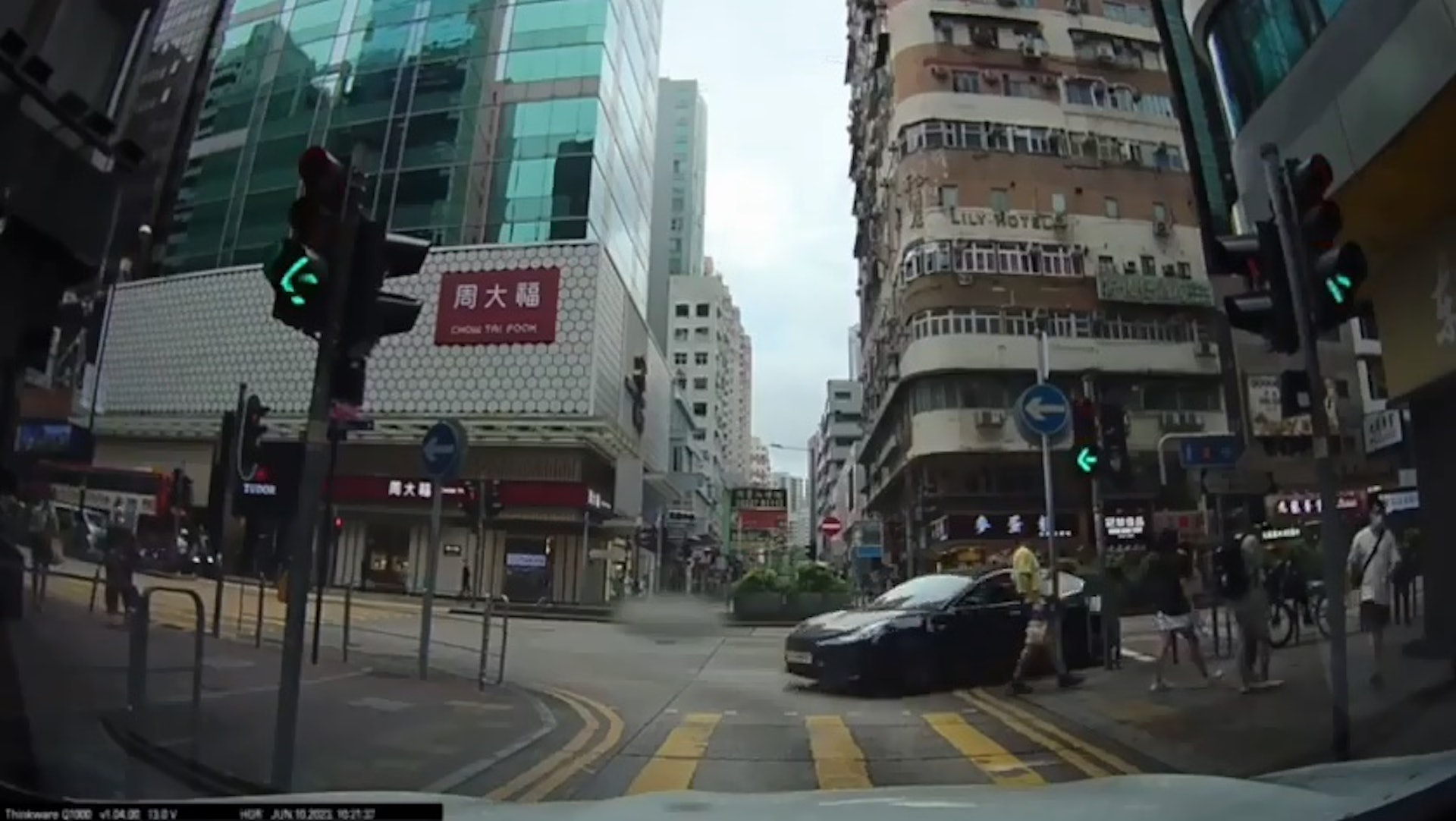 0 y- e6 D0 \* n3 W0 H5 o3 m" Ktvb now,tvbnow,bttvbTesla高速駛至登打士街,幾乎撞到一名正過路的男途人。(網上影片截圖)