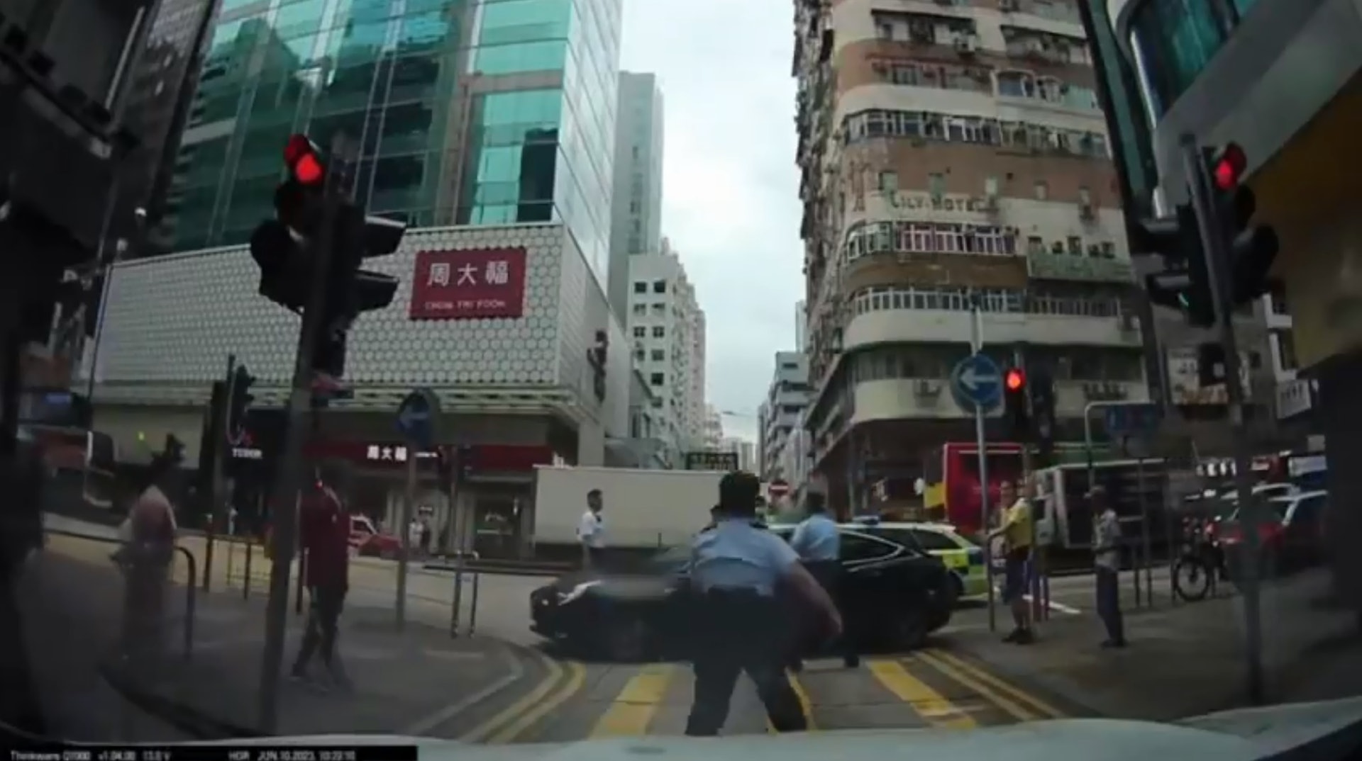 網上流傳車Cam片段,顯示今日(10日)早上約10時20分,旺角一輛黑色Tesla沿彌敦道高速行駛,駛至周大福商業中心對開時突逆線左轉入登打士街,幾乎撞到車Cam片主及一名正過路的男途人。Tesla司機見狀隨即往彌敦道方向倒車,約10秒後後方一輛警車趕至,阻擋Tesla駛離。另一片段則顯示,至少6名警員到場包圍Tesla調查,有警員手持警棍,其中一名警員試圖打開前方乘客座位車門惟不成功,其間未見Tesla司機下車。TVBNOW 含有熱門話題,最新最快電視,軟體,遊戲,電影,動漫及日常生活及興趣交流等資訊。1 p6 m. h& v1 ]3 y, R# c9 q