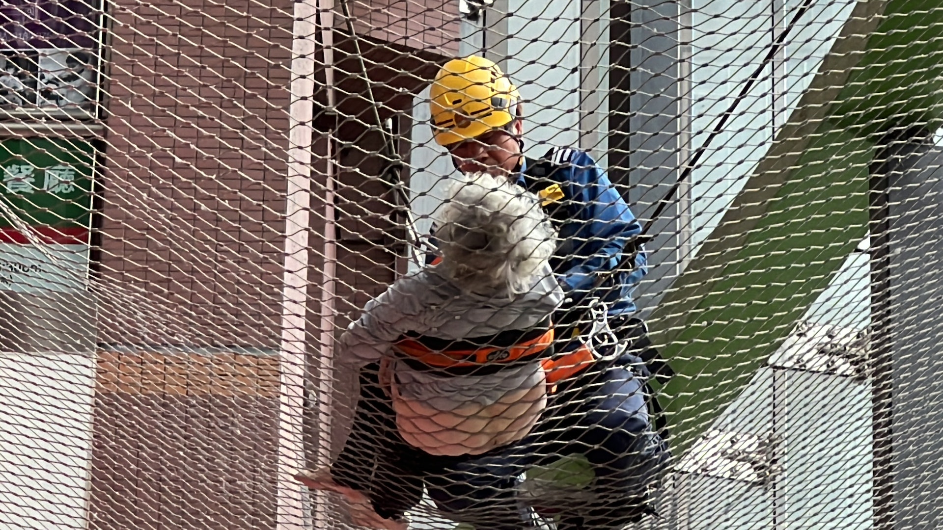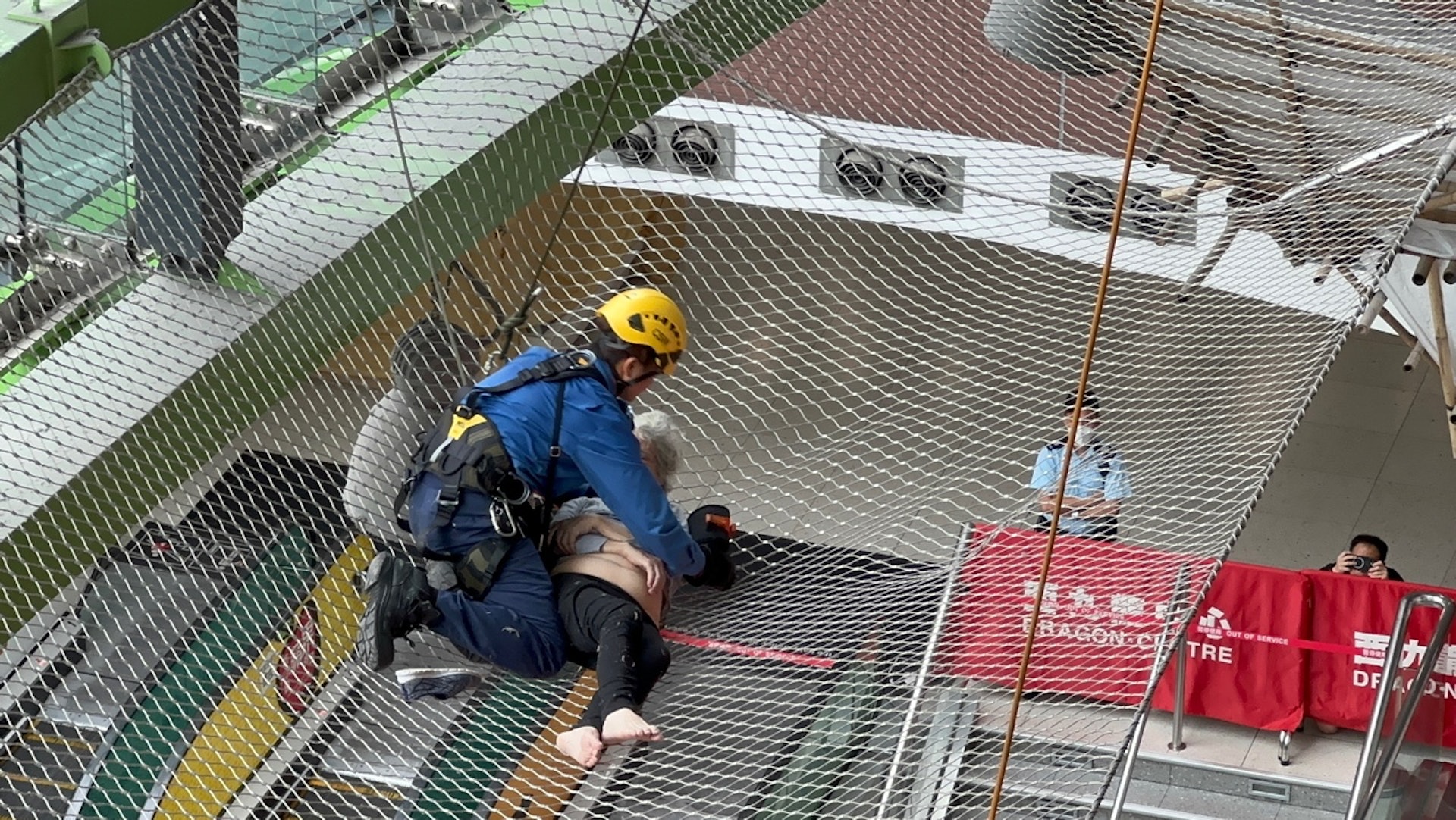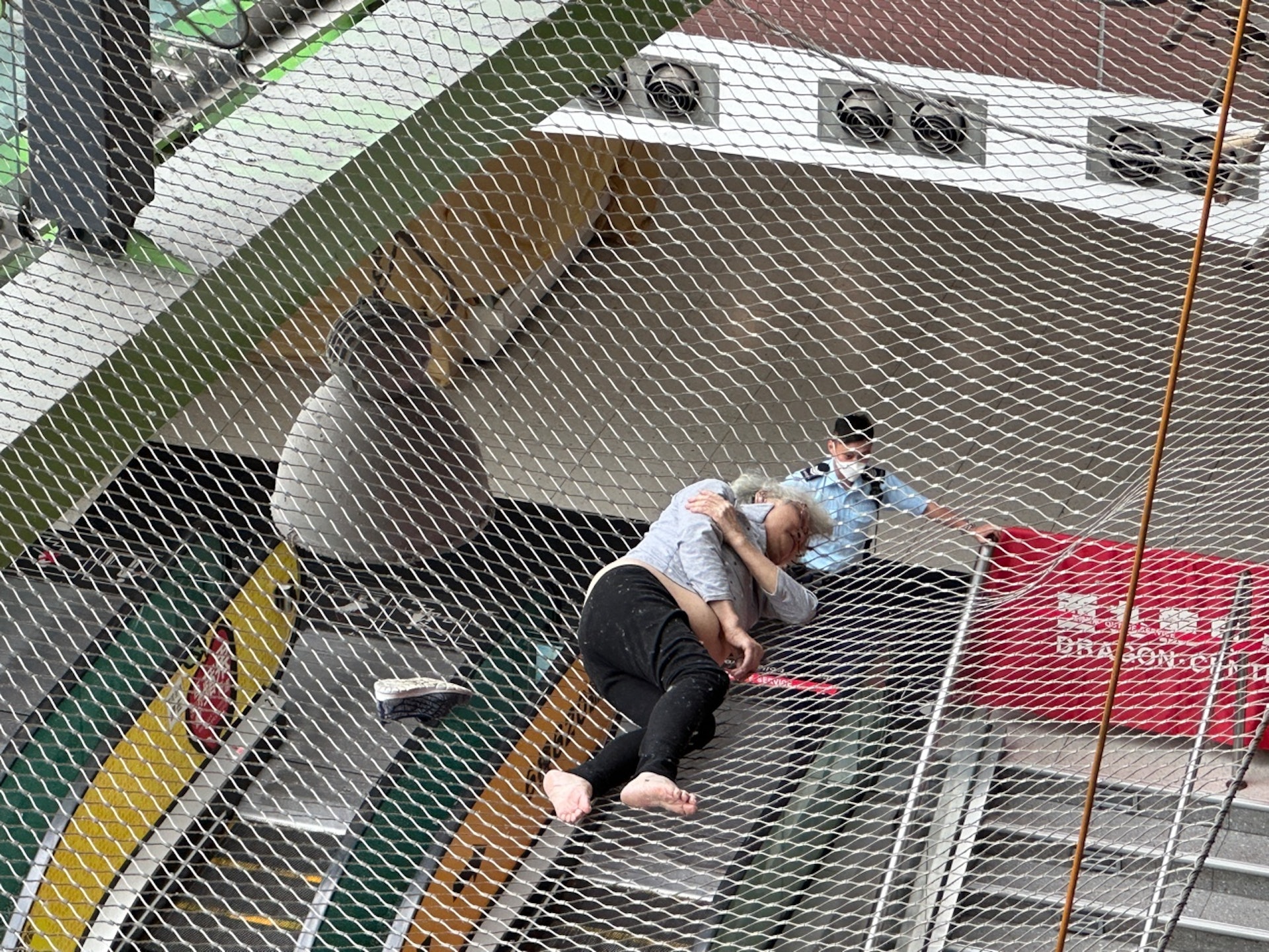 ( N, a; x0 L" X: T1 dtvb now,tvbnow,bttvb老婦跌在安全網內。(林澤鋒攝)! J$ C1 G; Z! @