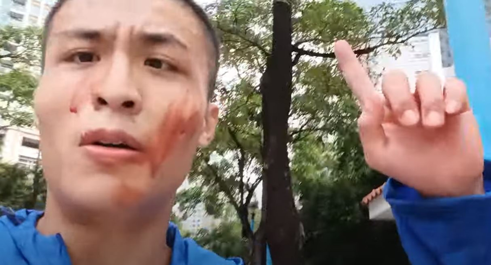 - u5 K" m0 D2 u J8 ^5 v劉馬車事後亦進行直播,稱自己會自首,可見他臉上有血迹。(劉馬車youtube頻道)