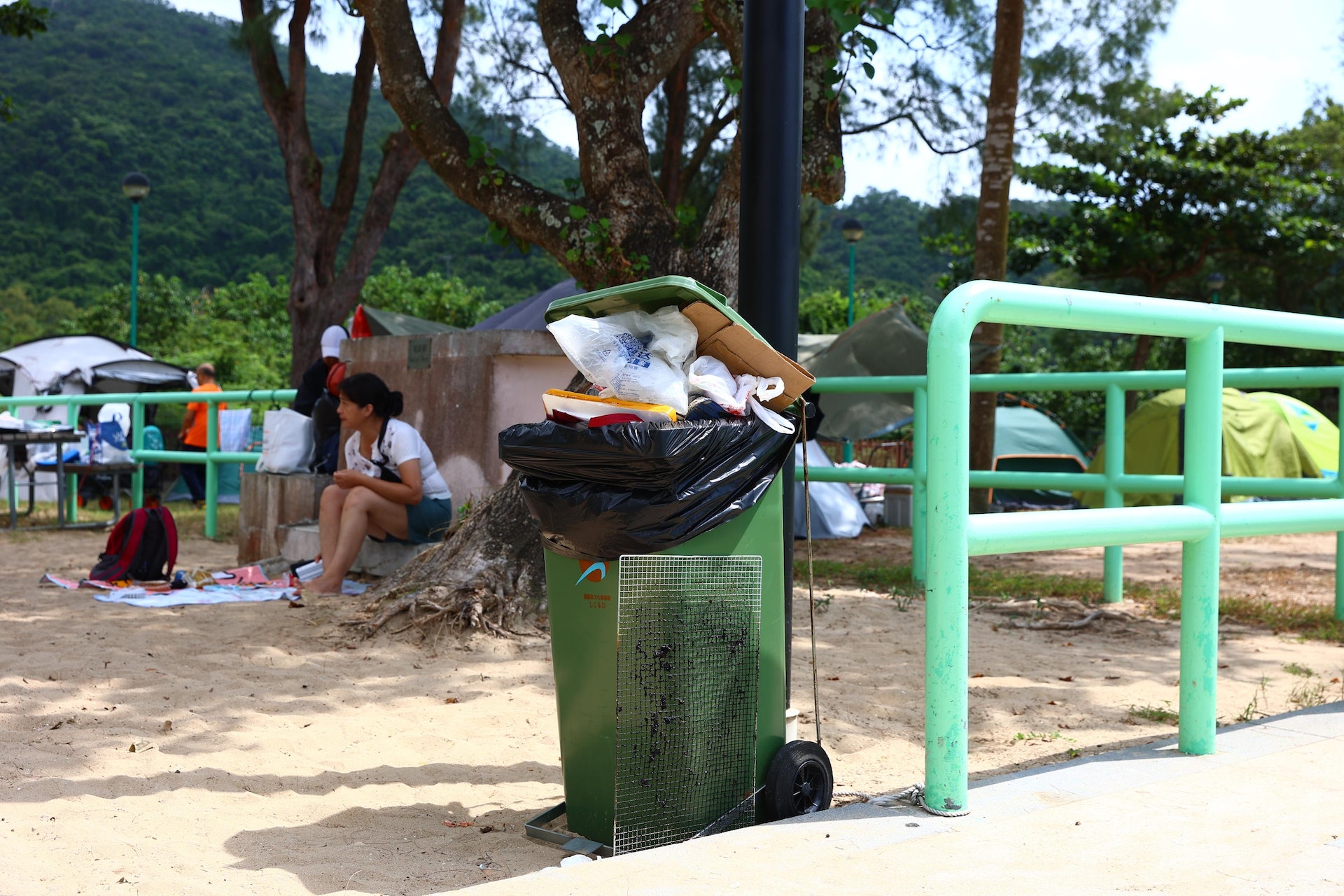 不少內地遊客愛到香港營地露營,在10月2日,大嶼山貝澳營地可見有多個帳幕紮營,垃圾大致收拾好。(鄭子峰攝)