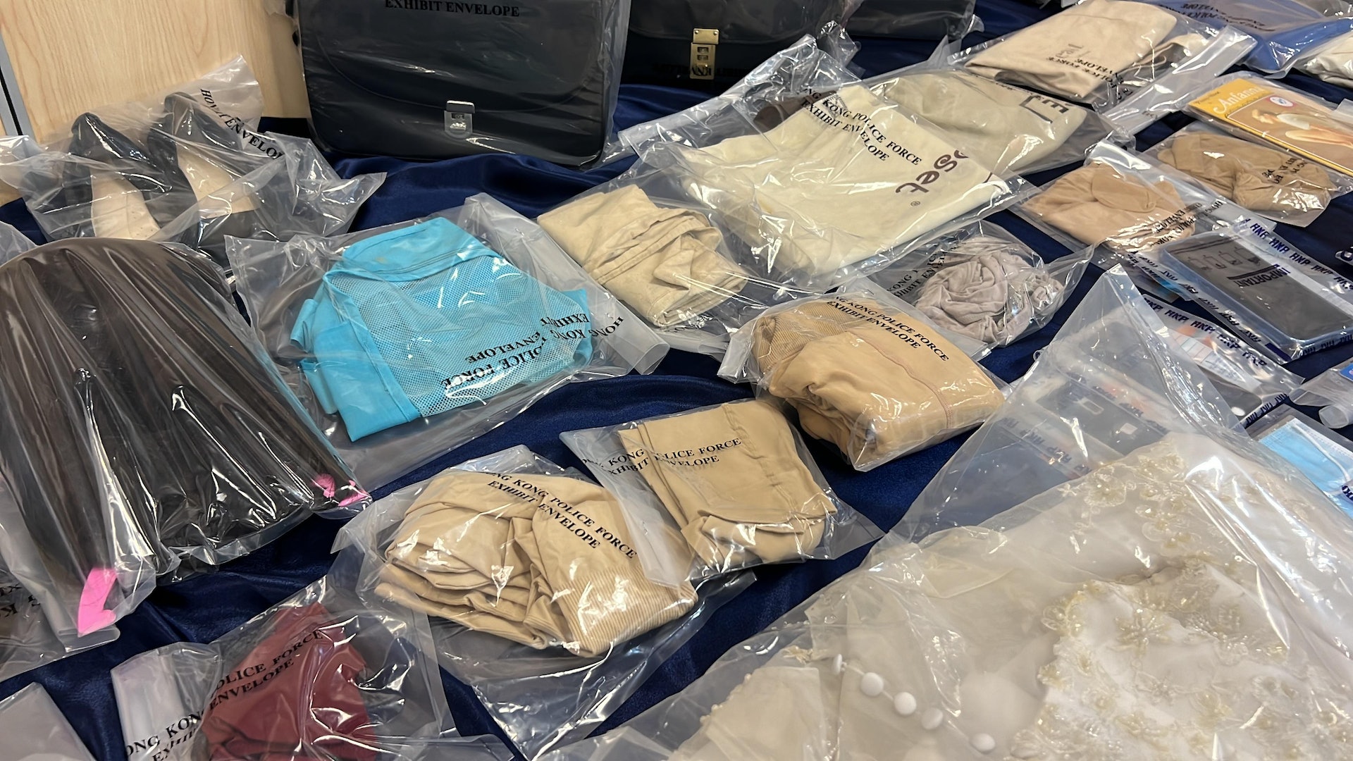 7 [, p! K" J0 Y警方檢獲的證物,包括女校校服、黑色絲襪及化妝品等。(翁鈺輝攝)tvb now,tvbnow,bttvb1 {! I- u9 z- A- k' T