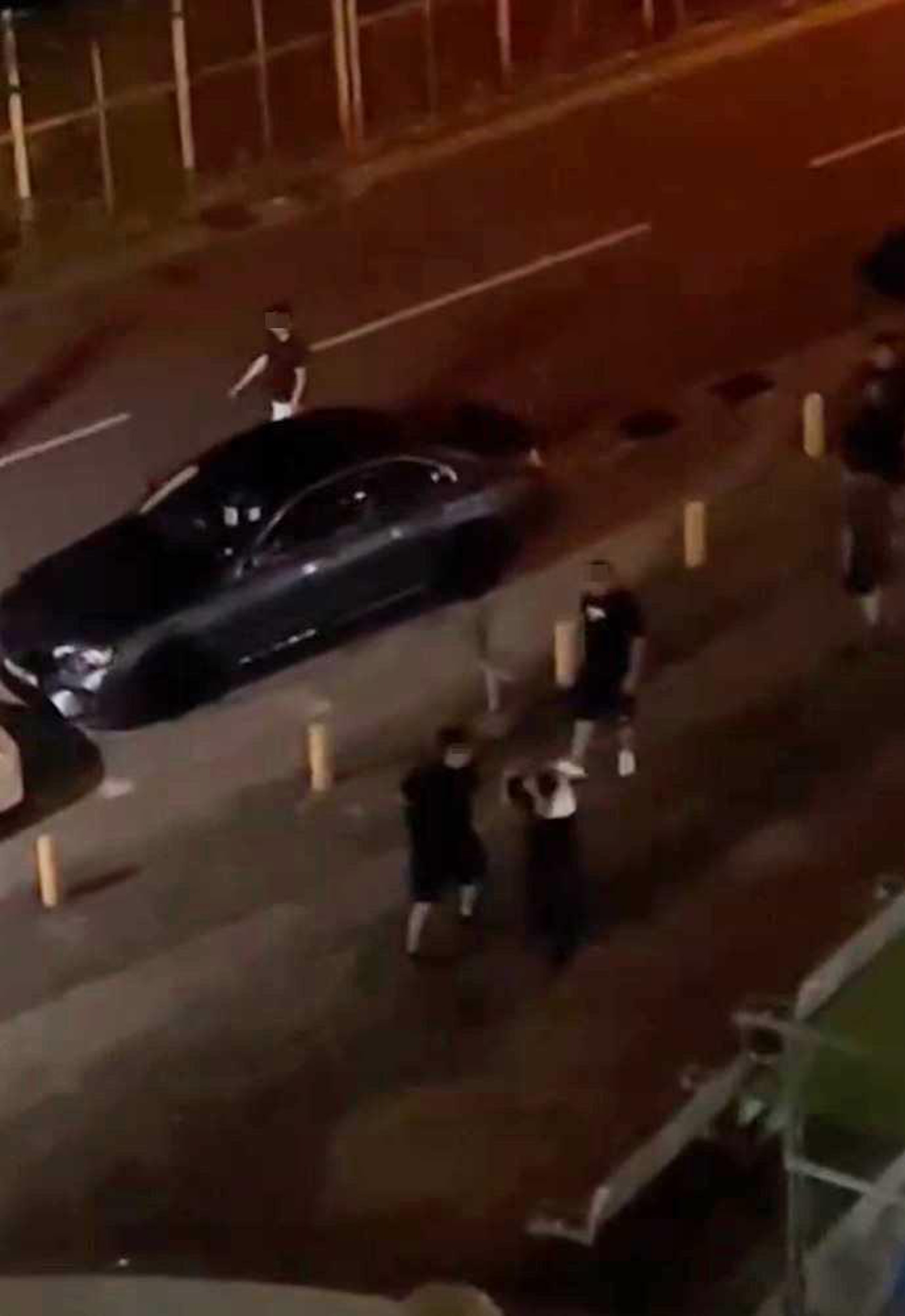 但黑衣男多次狂叫「我陀地呀」、「你當我新義安流㗎」,嚇到捱打保安立即跑走,突然他見到其他保安經過,以為對方有份鎖車,於是上前挑釁,但黑衣男同行女子表示對方不關事,黑衣男大聲表示「唔關事行開啦」、「打埋你」,同黨繼續挑釁「鎖咪鎖,擺張單啦X你老母」,他們陸續上車打算離開,但有人扔出車鎖,得戚表示「還畀你」,說完狂笑。: C6 L4 p8 [+ E( v
