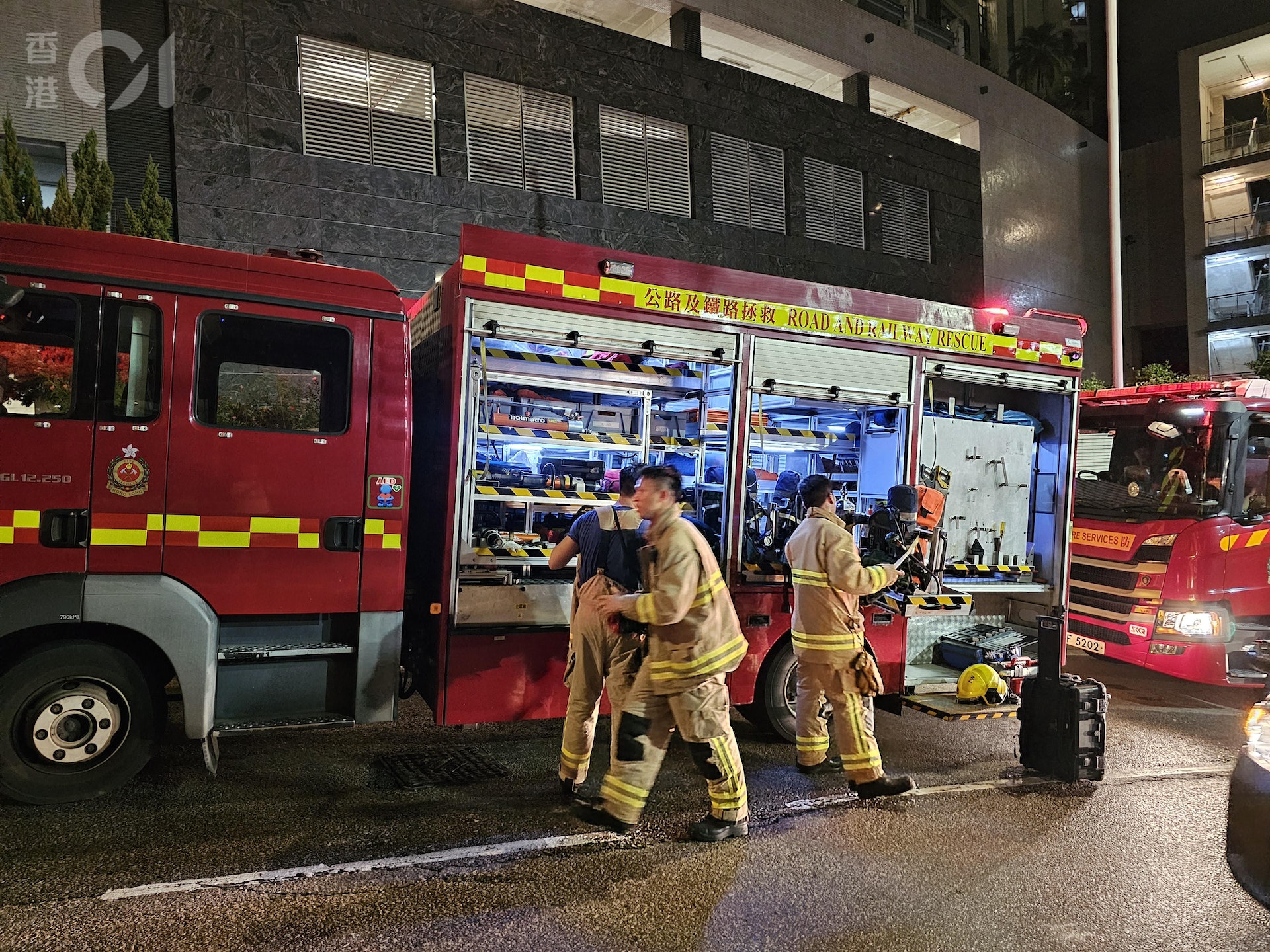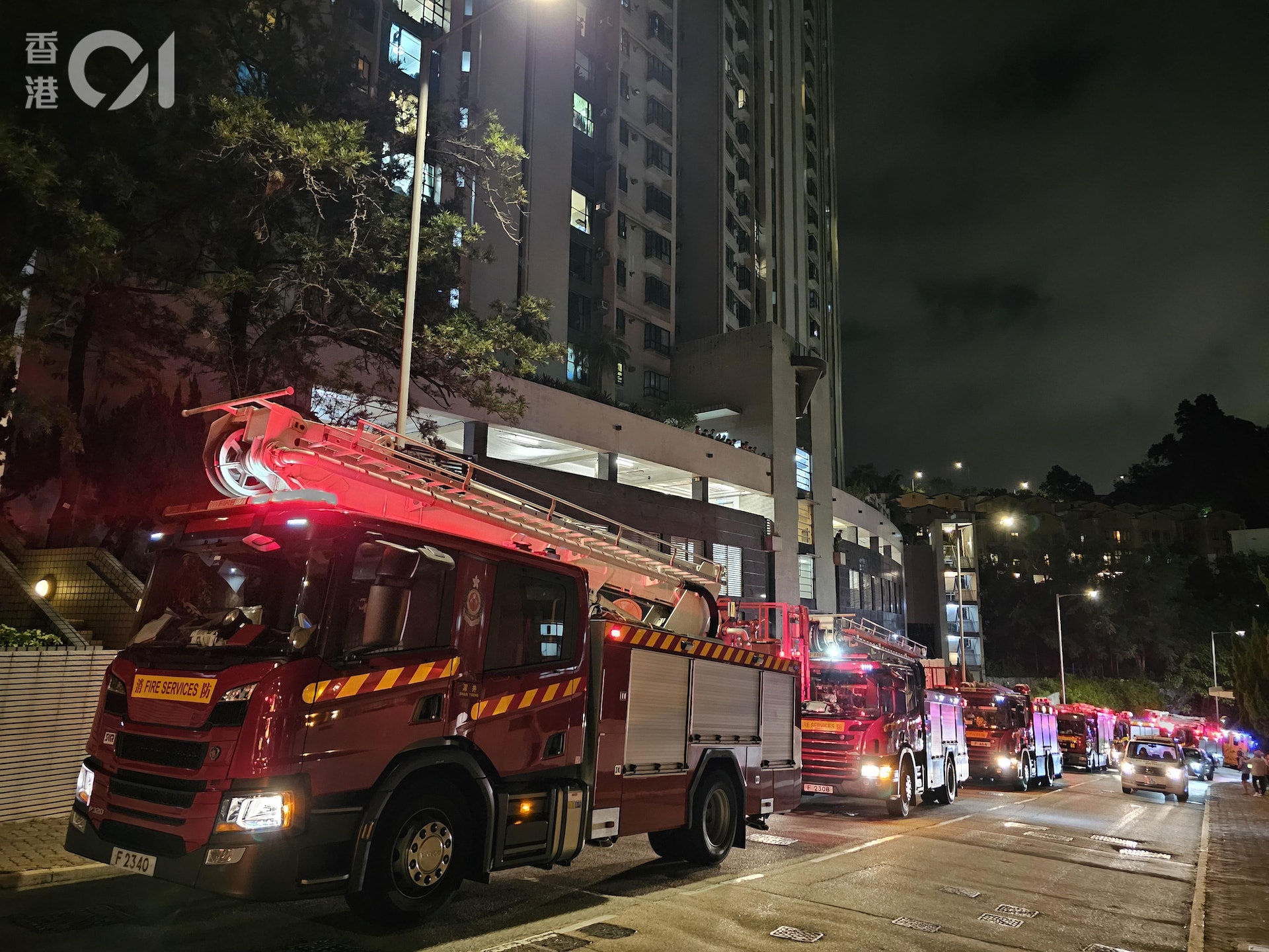 5 J4 `! t# e4 ?公仔箱論壇恆麗園2座一高層單位內有雜物起火,大批消防車到場戒備。(梁偉權攝)