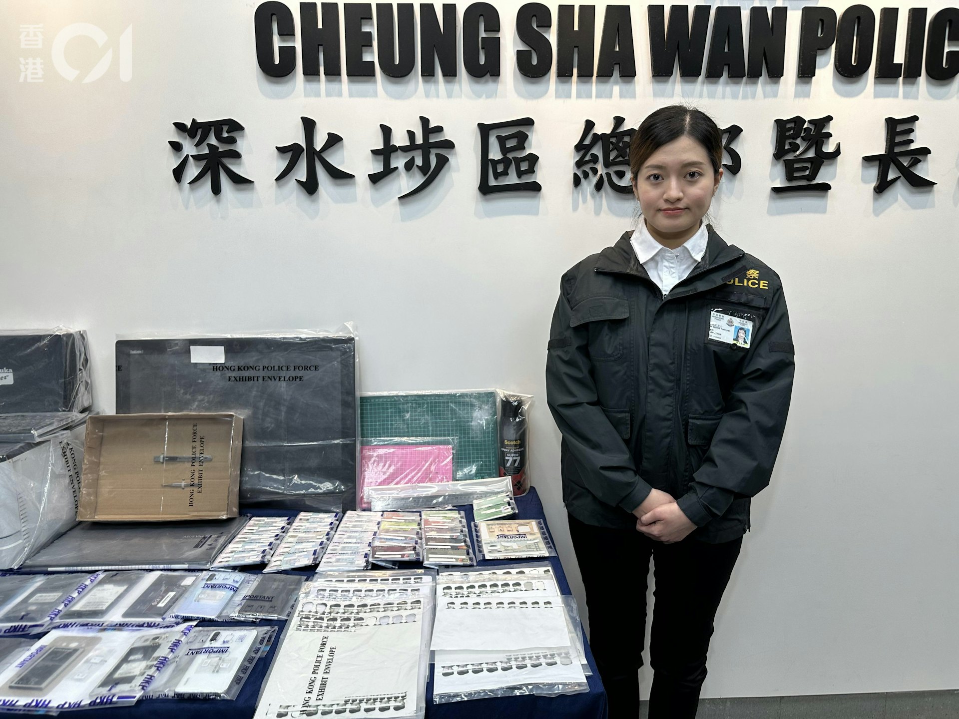 % q7 Q4 |5 p, S9 {2 p, F$ C警方昨日(8日)採取情報主導行動,突擊搜查涉事單位,發現內有2男1女,並檢獲28張屬於他人的身份證明文件,包括香港身份證、回鄉證、銀行卡、駕駛執照、以及俗稱「平安咭」的建築業安全訓練證明書。人員亦檢取一批懷疑製作工具,包括電腦、影印機、美術切割舊版、鎅刀及噴膠;亦檢獲多張印有不同尺寸證件相頭像的貼紙,相信用作轉換身份證頭像。
