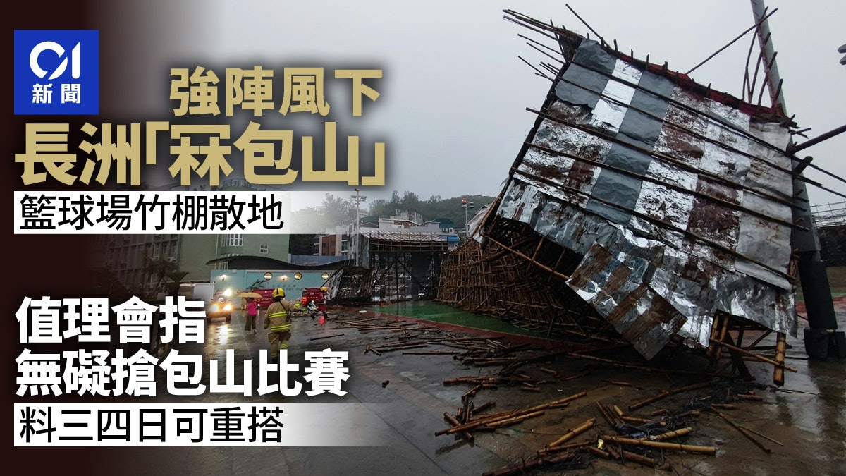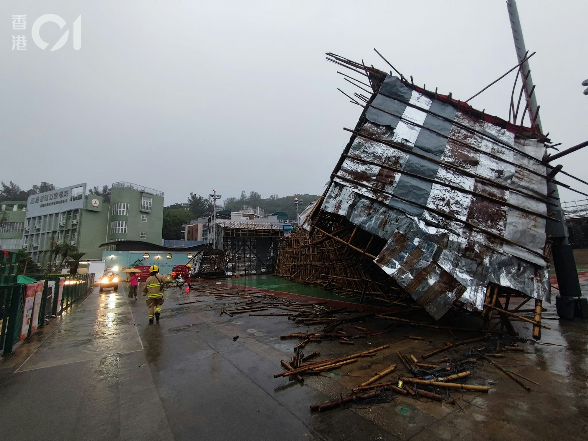 $ N% R! a( i" t* W# m @1 t長洲北社三里籃球場有包山架倒塌。(Don Lee/Living Cheung Chau 活力長洲); E8 X! `: a8 @) G/ w