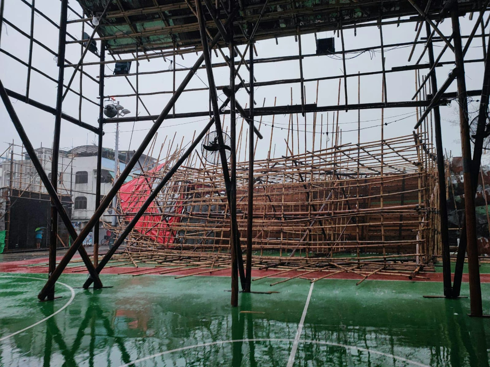 長洲北社三里籃球場有包山架倒塌。(fb/長洲足跡Footprint of Cheung Chau)tvb now,tvbnow,bttvb- o+ Y) N- A7 w$ I4 R3 q& H) D5 ^