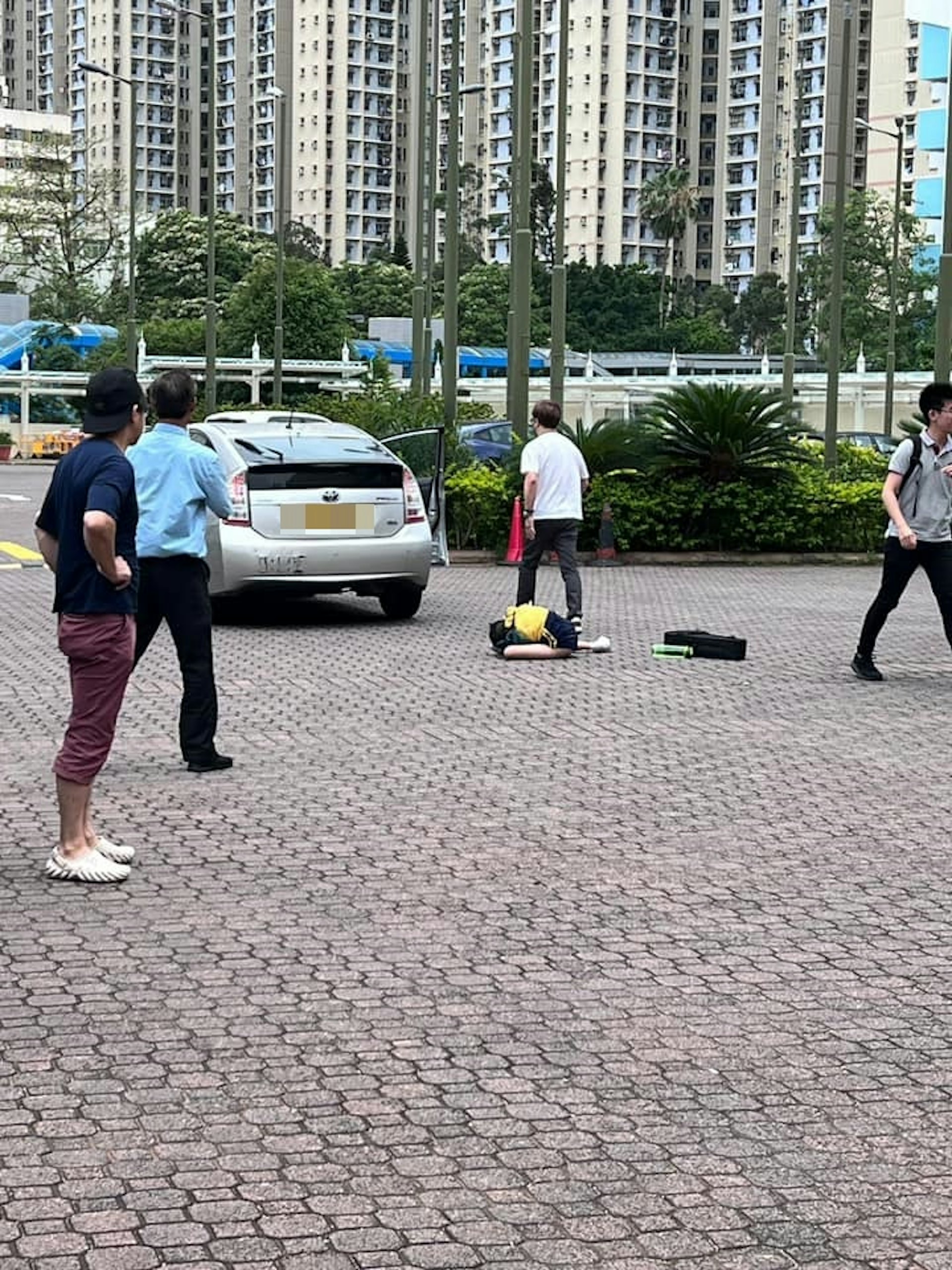 途人及私家車司機查看學童的情況。(Bosco Chu 片段截圖) |