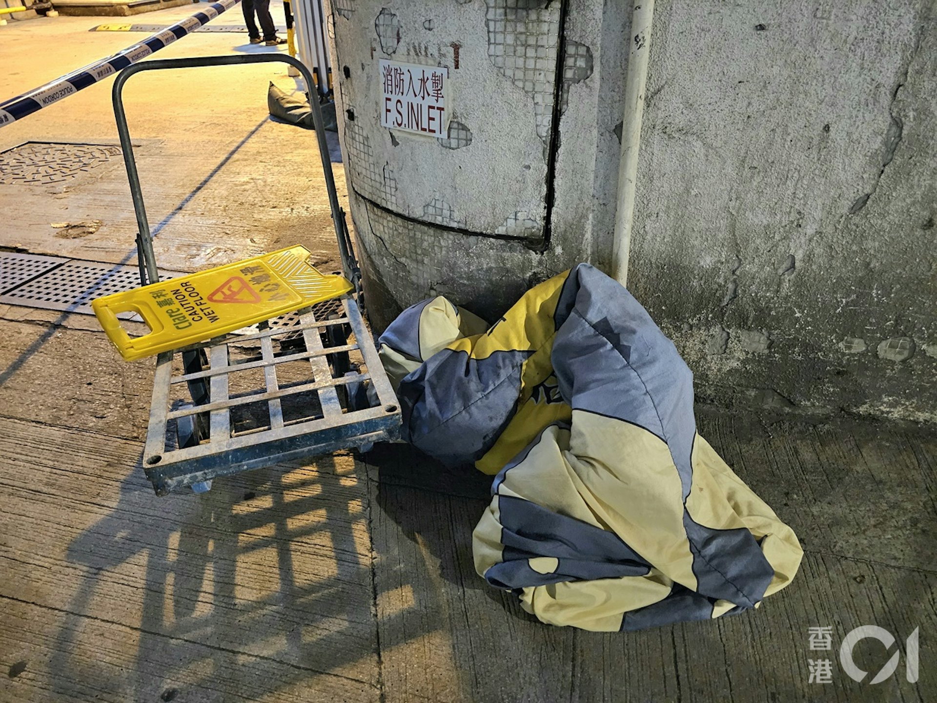 現場遺下手推車,探員套取指模蒐證。(梁偉權攝)