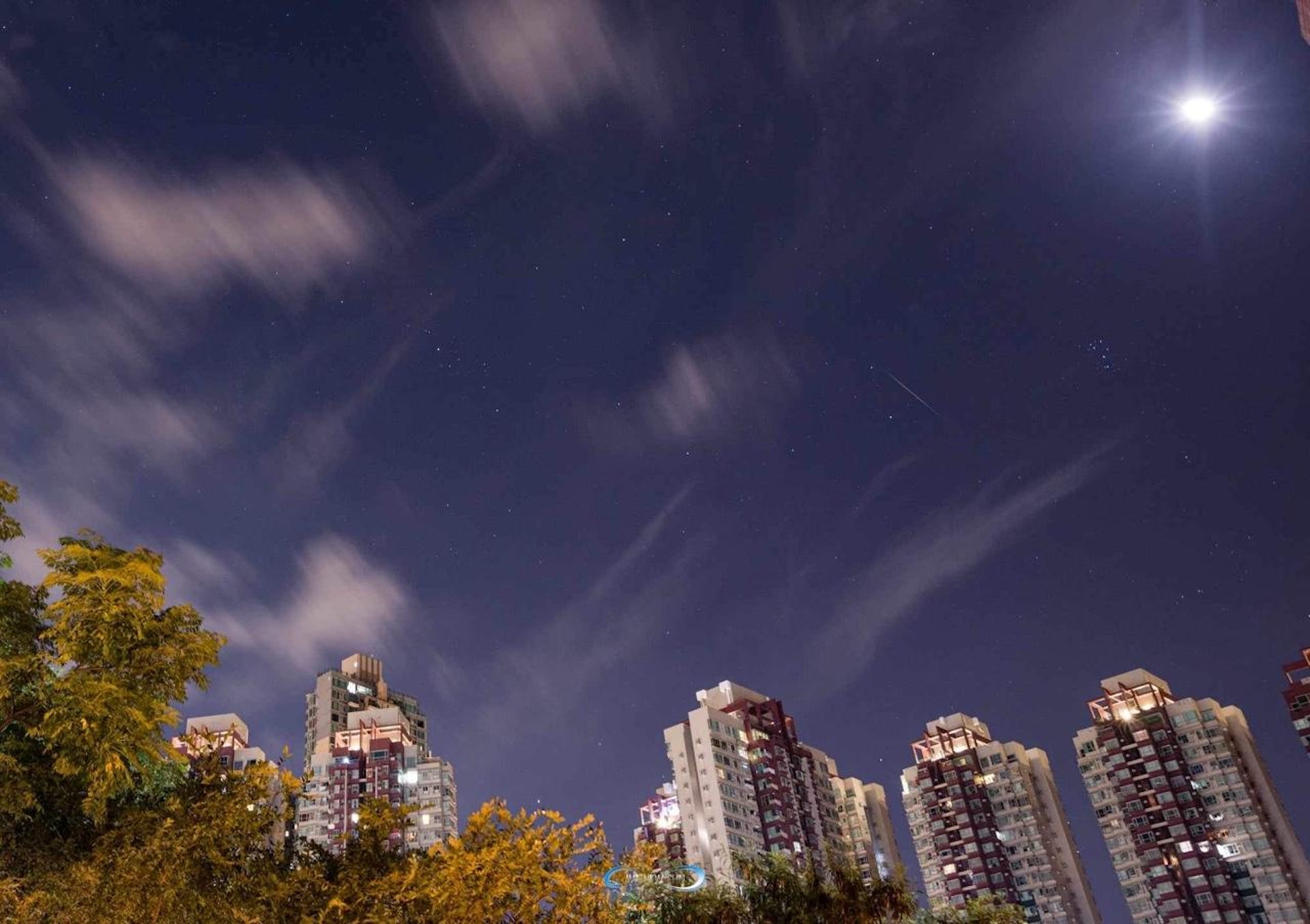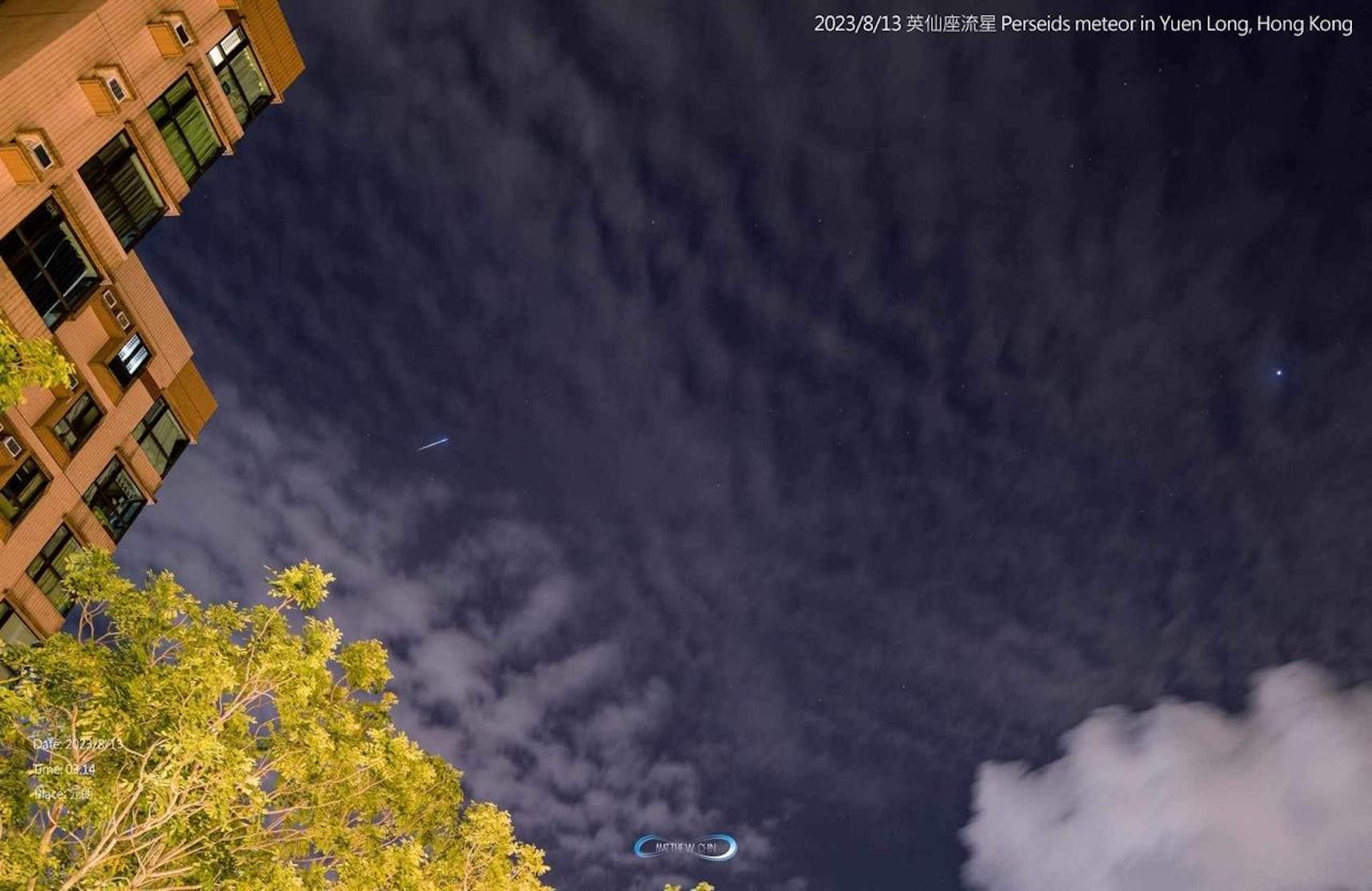 8 a! J# t) g+ W) jtvb now,tvbnow,bttvb有天文攝影愛好者近日在元朗拍攝到流星劃過夜空。(Matthew Chin提供圖片)