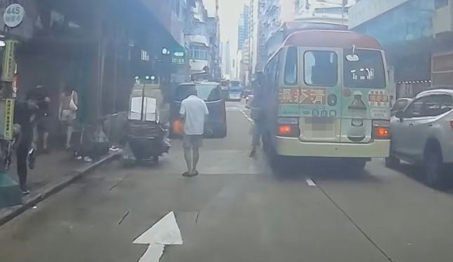 涉事紅Van於青山道中線靠左位置停車落客。(車cam特警影片截圖)