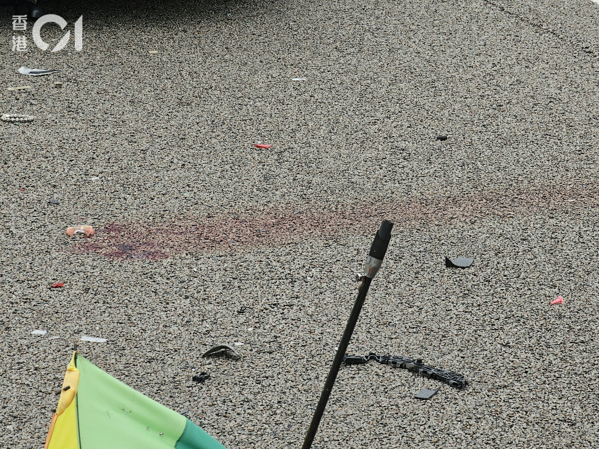 1 F \5 o7 e/ o, w3 Z港深西部公路發生嚴重車禍,現場地面遺下一灘血跡,並疑有一排假牙。(梁偉權攝)