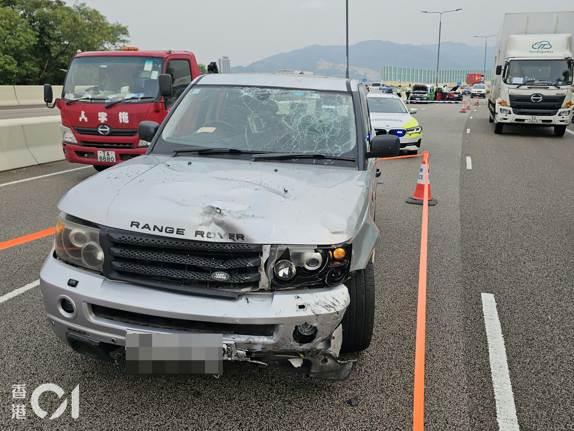 另一架涉事的Range Rover中港牌四驅車,意外後停在兩架涉事的士前方約20米的中線,其車頭撞毀凹陷,擋風玻璃亦破裂成蜘蛛網狀,司機及副駕駛座安全氣袋彈出。