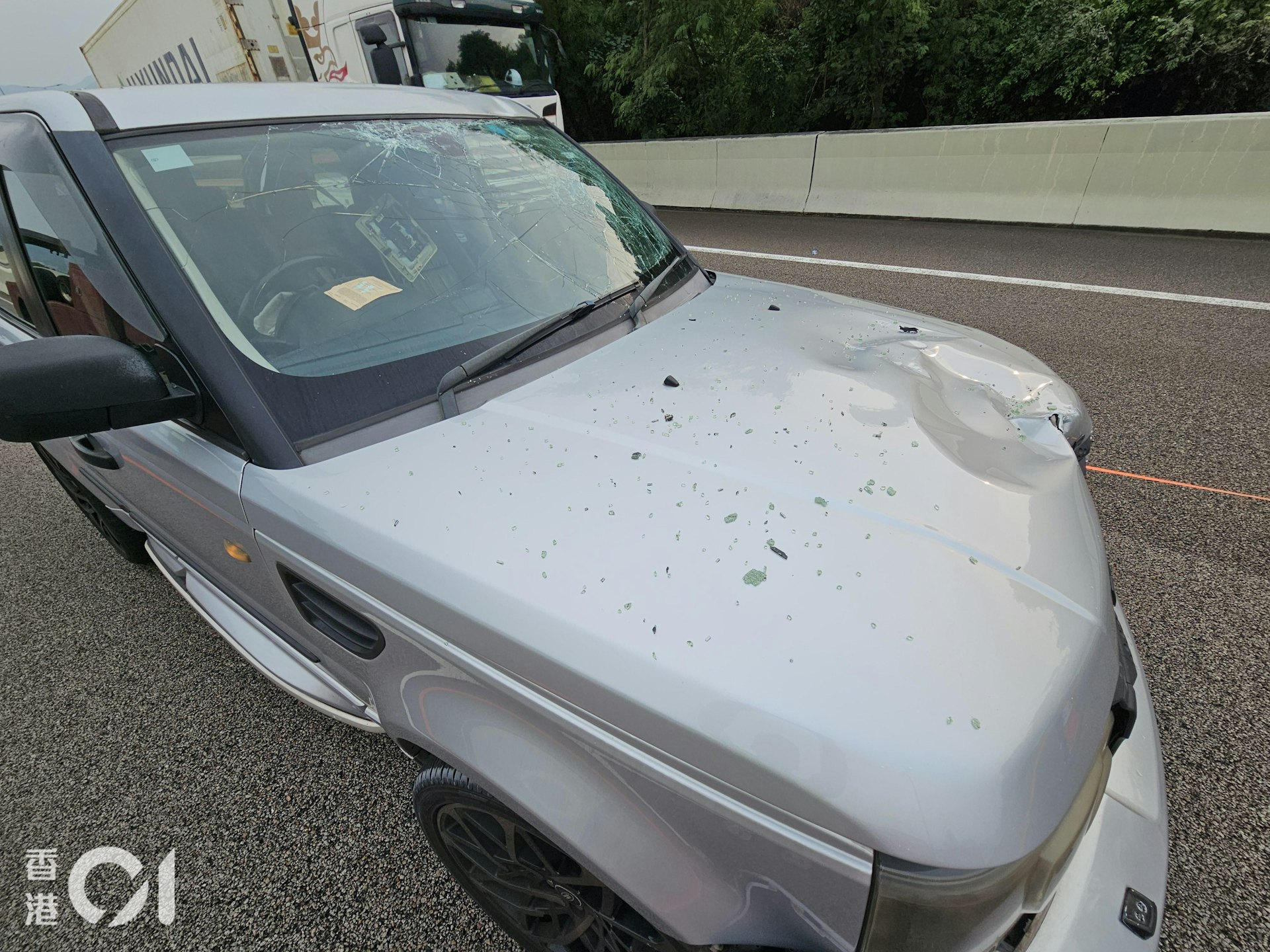 1 t2 h4 E8 b! l5 u; ]. d公仔箱論壇港深西部公路發生嚴重車禍,涉事四驅車車頭撞毀,擋風玻璃破裂。(梁偉權攝)