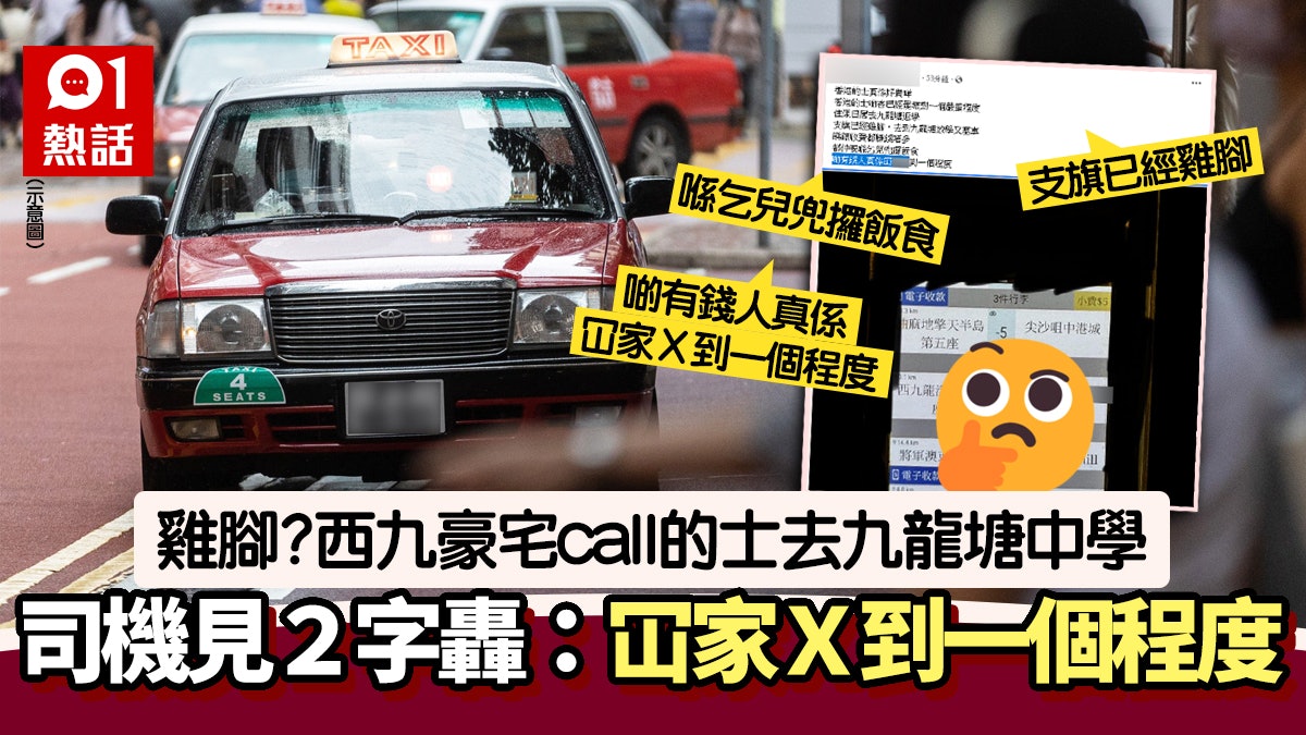 * i7 R% B, l h: R3 ]. L樓主不滿由九龍站豪宅屋苑西九龍漾日居到九龍塘某中學,竟然要求九折,而且「支旗已經雞腳」。(fb群組「的士司機資訊網Taxi」圖片)
