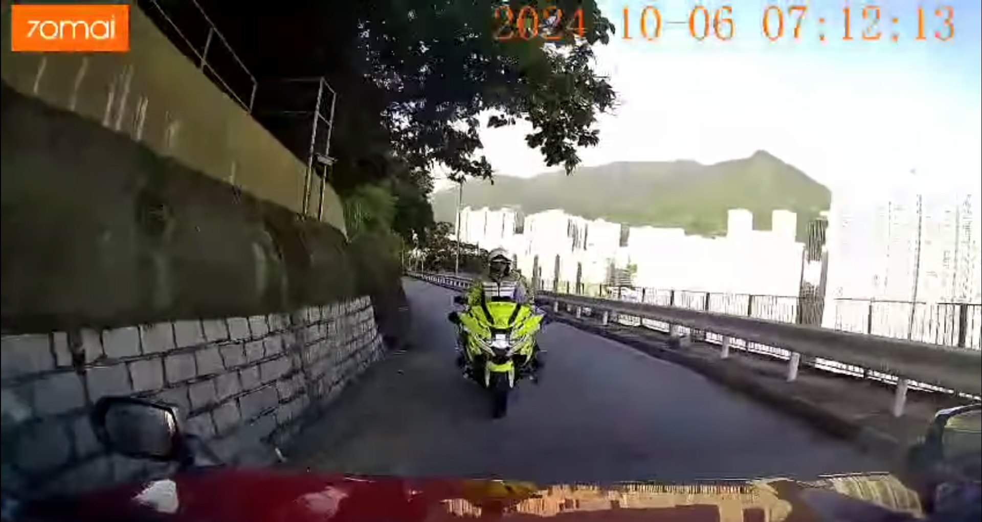 柴灣發生涉及警車的交通意外。網上流傳一段車cam影片,可見今日(6日)早上7時許,一輛的士與警察電單車,在歌連臣角道一條單線雙程路迎頭相撞,片中傳出的士司機煞車聲,但仍收掣不及撞上鐵馬,交通警連人帶車被撞至退後,警員其後手扶腰部、背靠防撞欄坐於路邊;電單車則向左傾側。而車禍後的士司機憂稱:「哎呀!哎呀!哎呀!哎呀!唔好意思阿Sir!唉‥‥‥」其後他下車了解。警員手扶腰部並靠往路邊欄杆坐下,拿出對講機通報。