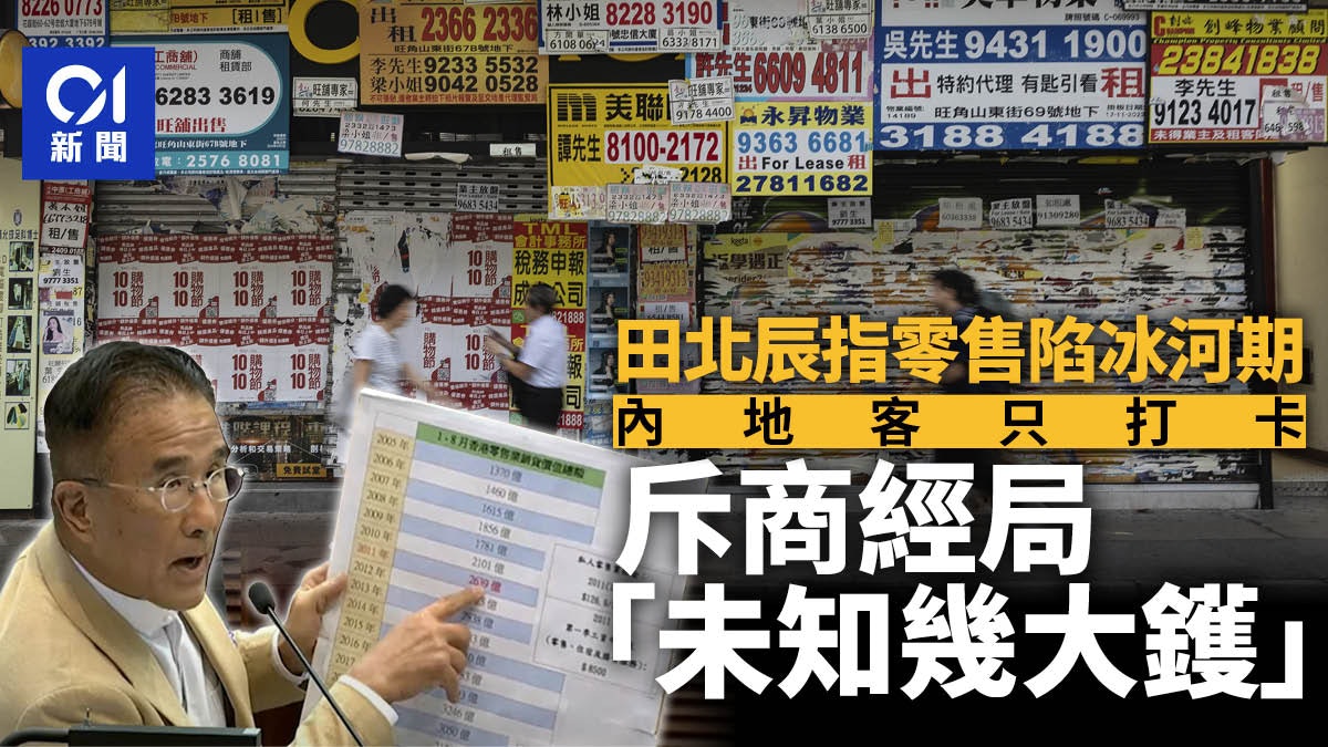 他說大批港人北上消費,粵客南下只為「打卡」,看不到局勢會扭轉,「你話我哋幾大鑊」,更直指商經局「我諗你都未知幾大鑊」。業界如要求存,他建議租金要減三成,政府寬免未來兩年差餉,同時配合業界創新求變。
