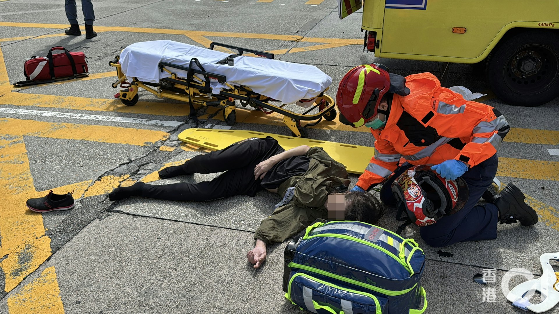 男傷者口吐鮮血,救護員即場為他急救。' f- D* P& I2 ^1 B1 f