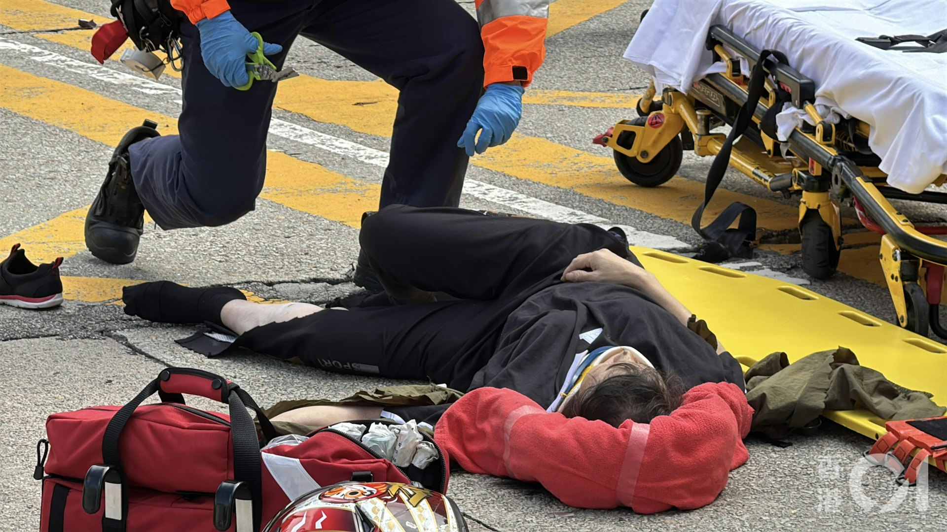 2 R l' R. e" Los.tvboxnow.com女傷者倒地受傷,救護員為她檢查傷勢。0 _6 @% b( V2 p' E