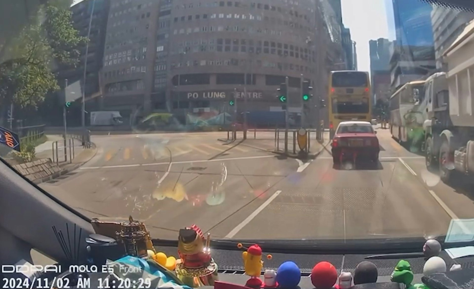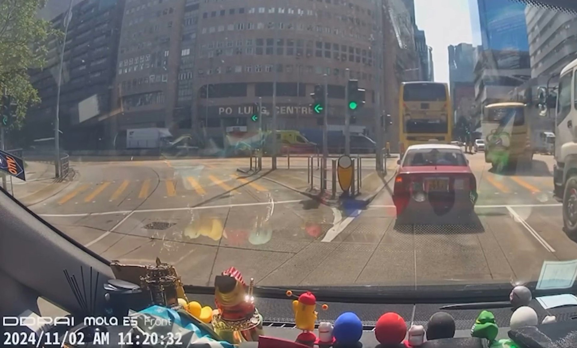 上午11時20分,其他車輛駛至宏照道,前方正是啟祥道,車輛按照燈號停下。(facebook群組「車cam L(香港群組)」影片截圖)tvb now,tvbnow,bttvb& c5 {2 Z3 f- k' d0 ^