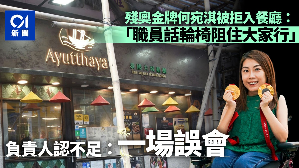 & |0 f1 q0 @* f' O) x* g【Yahoo 新聞報道】巴黎殘奧金牌得主、港隊硬地滾球代表何宛淇昨(5日)於 Threads發文,指銅鑼灣一家食肆店員以「冇位俾輪椅」為由,拒絕她入餐廳用膳。事件引起外界譁然,涉事餐廳「Ayutthaya」被網民批評歧視。餐廳負責人回覆《Yahoo新聞》指,絕對歡迎輪椅人士,惟員工缺乏處理體型較大、無法摺疊的電動輪椅的經驗,承認做法有不妥,會反思及改善接待輪椅人士的用餐流程。