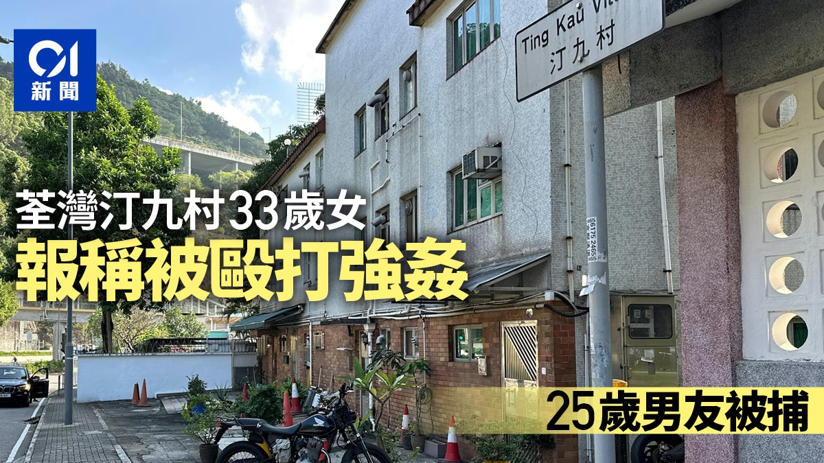 荃灣汀九村一對情侶,日前因瑣事爭執,25歲男子多次毆打33歲女友的頭。女友今日凌晨時份再到對方住所時,再被人用硬物打頭兼且性侵。女事主於是向朋友及警方求助送院,男子涉嫌「襲擊致造成身體實際傷害」及「強姦」被捕,案件交由荃灣警區重案組跟進。