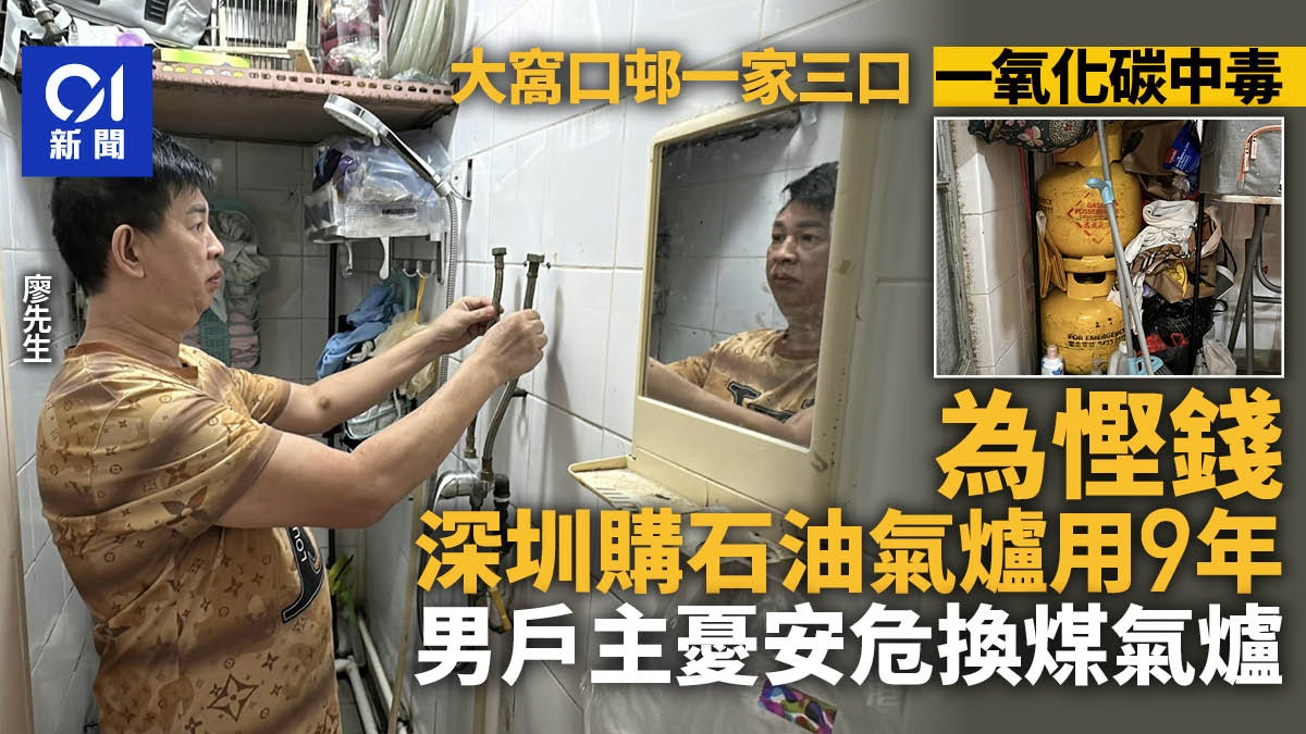大窩口邨富華樓一家三口一氧化碳中毒,男事主一度昏厥,送院後回復清醒。《香港01》今日(25日)接觸到廖姓男事主,他表示約9年前托朋友從深圳買熱水爐,來港自行安裝,多年來使用石油氣罐洗澡,懷疑爐具老化或沒關妥氣喉肇禍。他回憶前日洗澡後坐在椅上不醒人事,太太上前以為他睡著,不久亦都暈倒,由就讀中一的兒子報警。目前夫婦二人已經出院,兒子留院觀察後今日稍後亦出院。