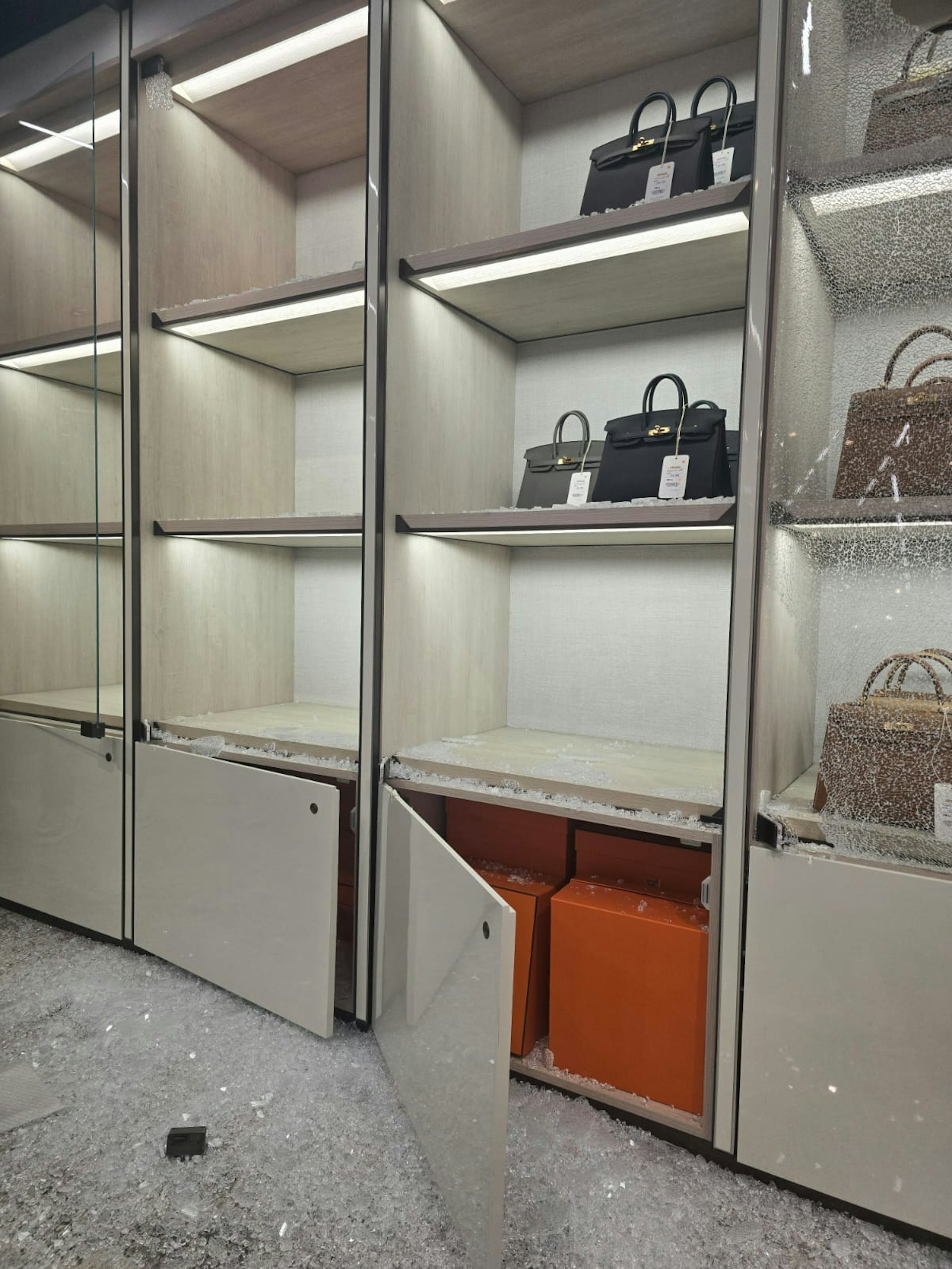 ▼賊人砸爛玻璃飾櫃,偷Hermès熱銷Birkin及Kelly款式▼