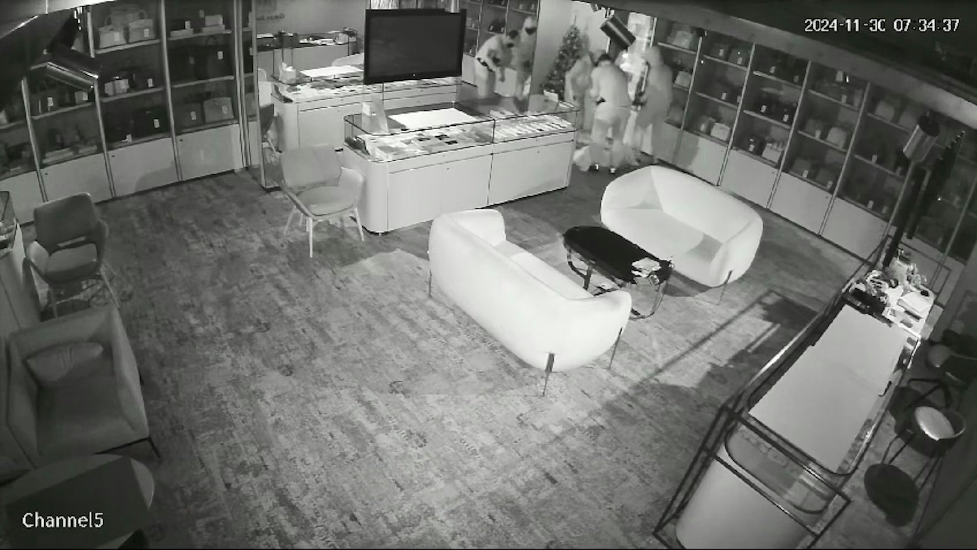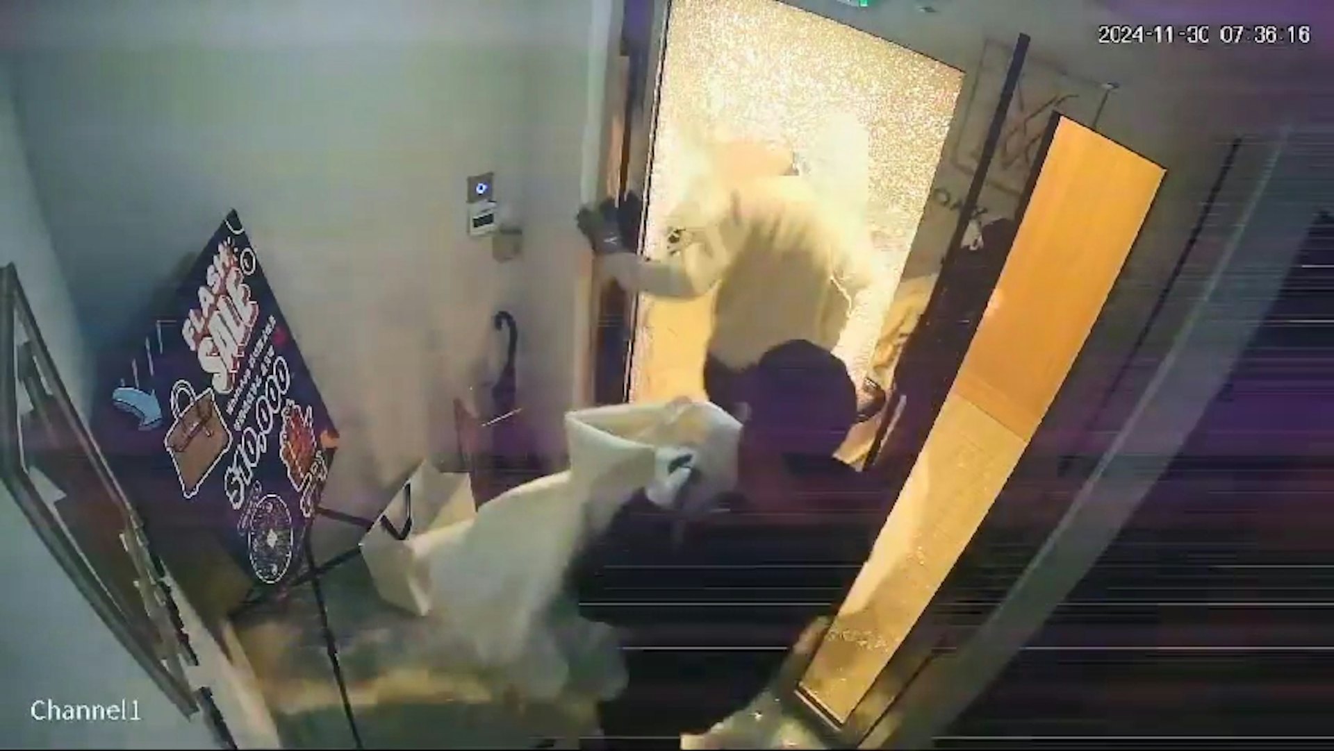 賊人帶來的3個白色大袋都裝滿手袋後,他們一人提着一個大袋匆匆離去。其中一名賊人離開時,更疑踩中跌於店門地面的玻璃碎,幾乎滑倒。由7時33分開始破門入內,至7時36分左右離場,整個犯案過程僅約3分鐘。