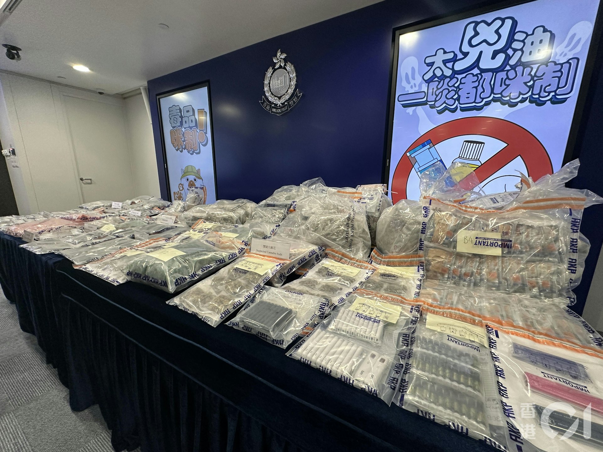 : V. E, |9 Y& Z/ @ C9 [/ {行動中檢獲多種毒品及第1部毒藥依托咪酯(即「太空油」),估計總市值約3,700萬元。(黃煦緻攝)公仔箱論壇( X8 L8 U2 Y5 R