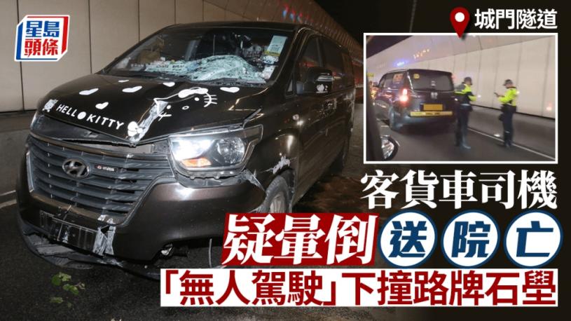 城門隧道發生交通意外。今日(8日)晚上7時許,一輛客貨車沿城門隧道往荃灣方向行駛,當駛近城門隧道入口時,48歲姓郭男司機突然暈倒,昏迷不醒,輕型貨車其後失控並撞向路邊石壆及一個路牌。車上1男4女乘客未有受傷,救援人員到場將司機送往仁濟醫院搶救,可惜最終不治,正調查意外原因,案件由新界南總區交通部特別調查隊跟進。