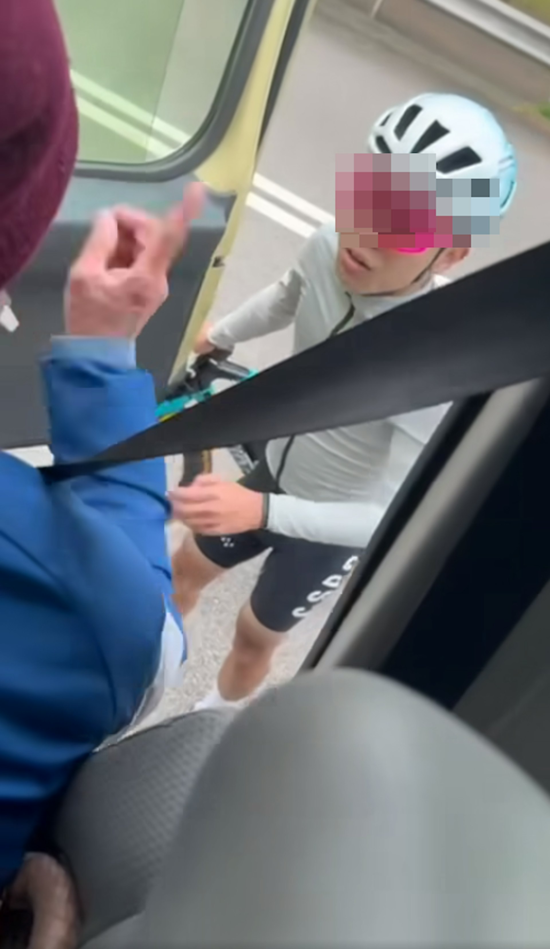 1 z; [3 d- e* j' U# p6 a! Z網上今早瘋傳在太和有單車隊與小巴司機因駕駛問題爆發舌戰,疑小巴司機曾響按,令單車人士不滿,攔車喝罵﹕「你呠乜X嘢啫,又唔係唔俾你行!」,有單車漢更雙手舉中指「伸脷」。事件引起網民熱議,批評單車隊人士態度惡劣,更質疑其行為是否已觸發法例,有網民更「人肉搜索」他們的身分。下午有人在社交平台「點相」,指一個名為Chris的單車YouTuber是片中舉中指單車人士,隨即被廣為流傳,更有人湧進Chris的Instagram、YouTube留言斥罵。$ l1 f2 }' k+ X" |/ w- e