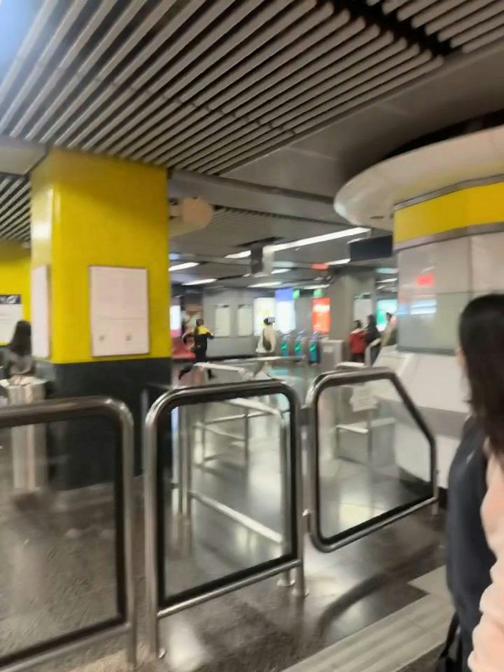 影片見到,港鐵尖沙咀站近閘口位置,有1名白衣男子拔足狂奔,疑似逃票,後方有1名長髮女職員奮力追趕,邊追邊喝斥「唔好走啊!」。2人高速消失於鏡頭,現場有不少人圍觀。