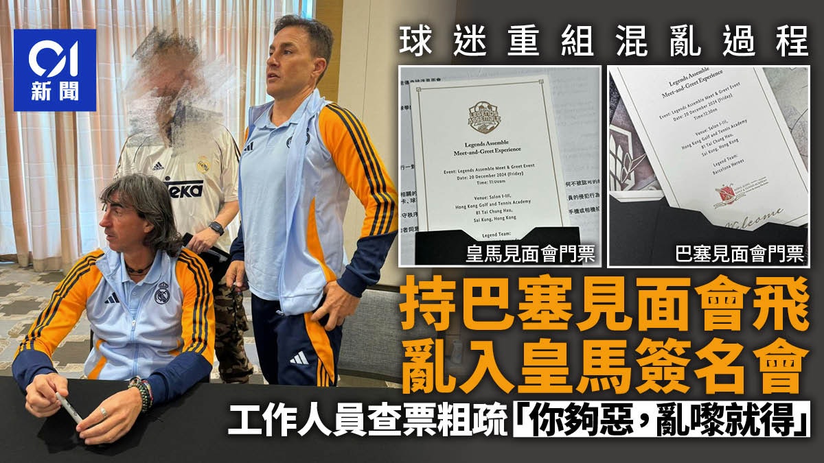 「Legends Assemble 傳奇球星表演賽系列—皇馬球星對巴塞傳奇」的球星見面會貨不對辦,原定與17名球星逐一簽名及合照,卻因大會安排不周未能成事,再有球迷透露當日大混亂情況。) h$ o4 F- a. J, v5 ^8 @- ~. }# t