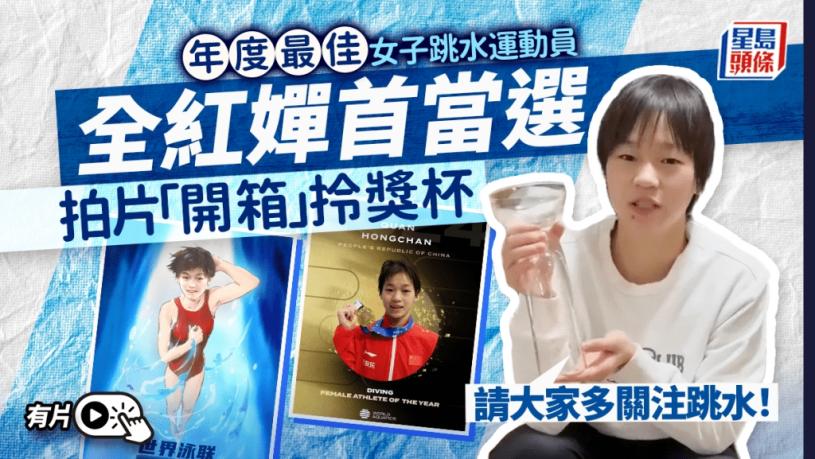 視頻中,全紅嬋舉著獎杯對鏡頭表示,「我很開心獲得這個獎項,感謝泳聯對我的認可,請大家多關注跳水,感謝大家的支持!」