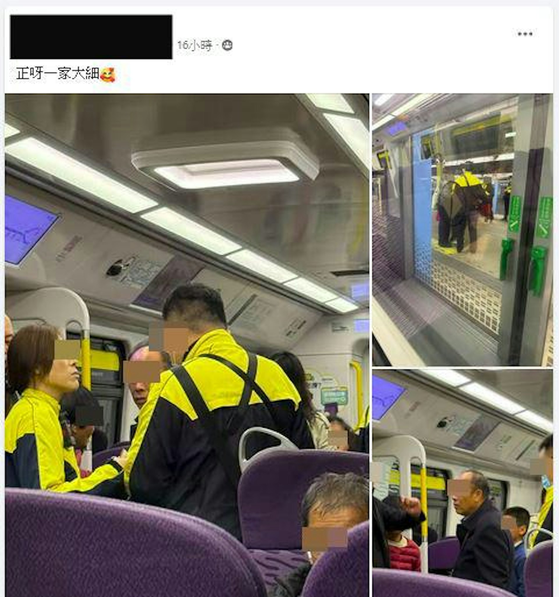 . @9 F; g6 P7 T! @坐港鐵東鐵綫列車頭等車廂,必須支付足夠車資,以免「破財」。有港男2月3日(星期一)於Facebook群組「上水人大聯盟」發布多相相片,指乘搭東鐵綫頭等車廂時,有1隊港鐵職員上車查票,多名乘客「斷正」被罰款,當中「有老有嫩」,形容是「一家大細」。公仔箱論壇- i+ L$ j) e7 m# O+ Y+ O