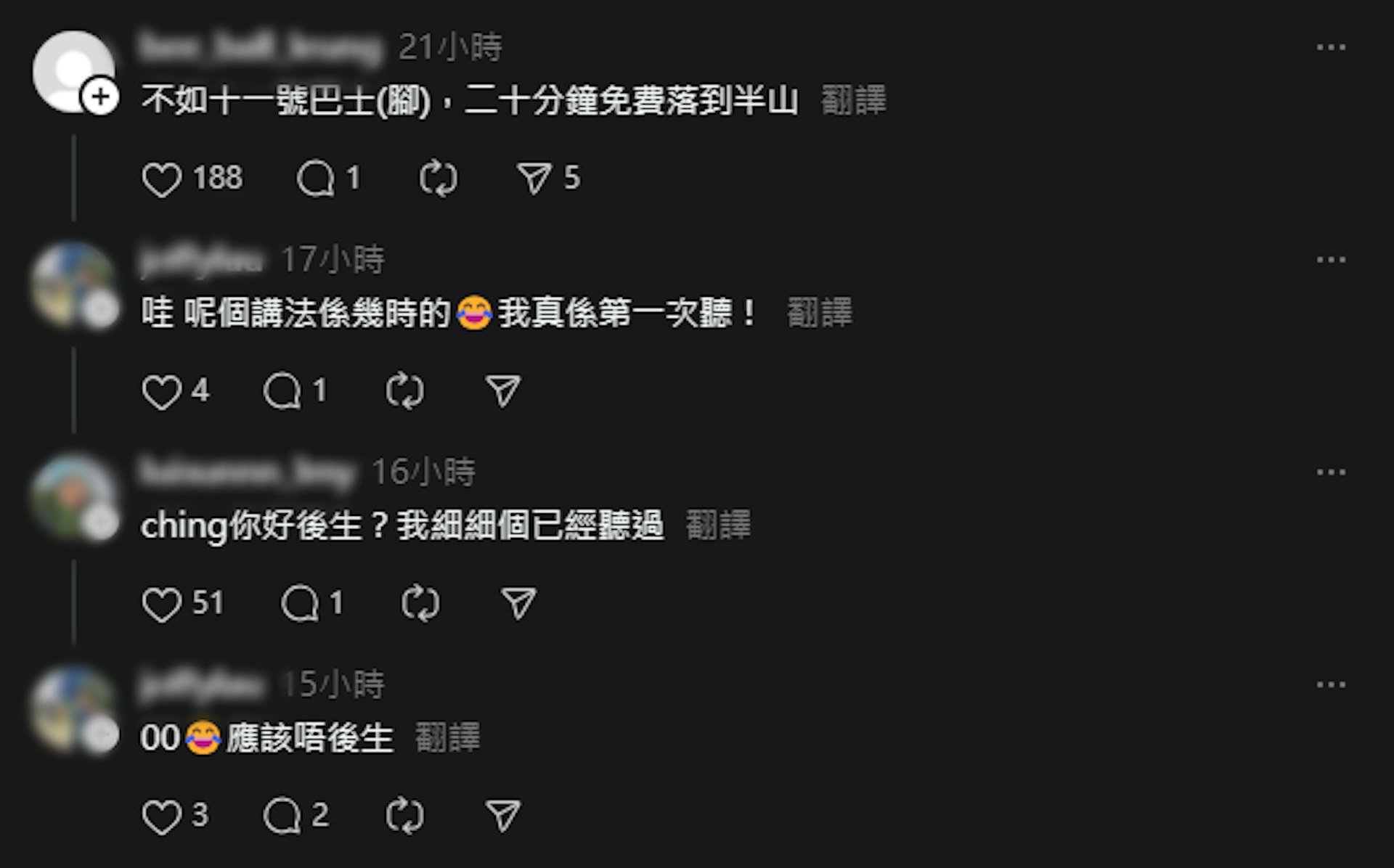 / ?/ S E$ |3 W; S網民在帖文下留言,向事主「教路」。(Threads截圖)