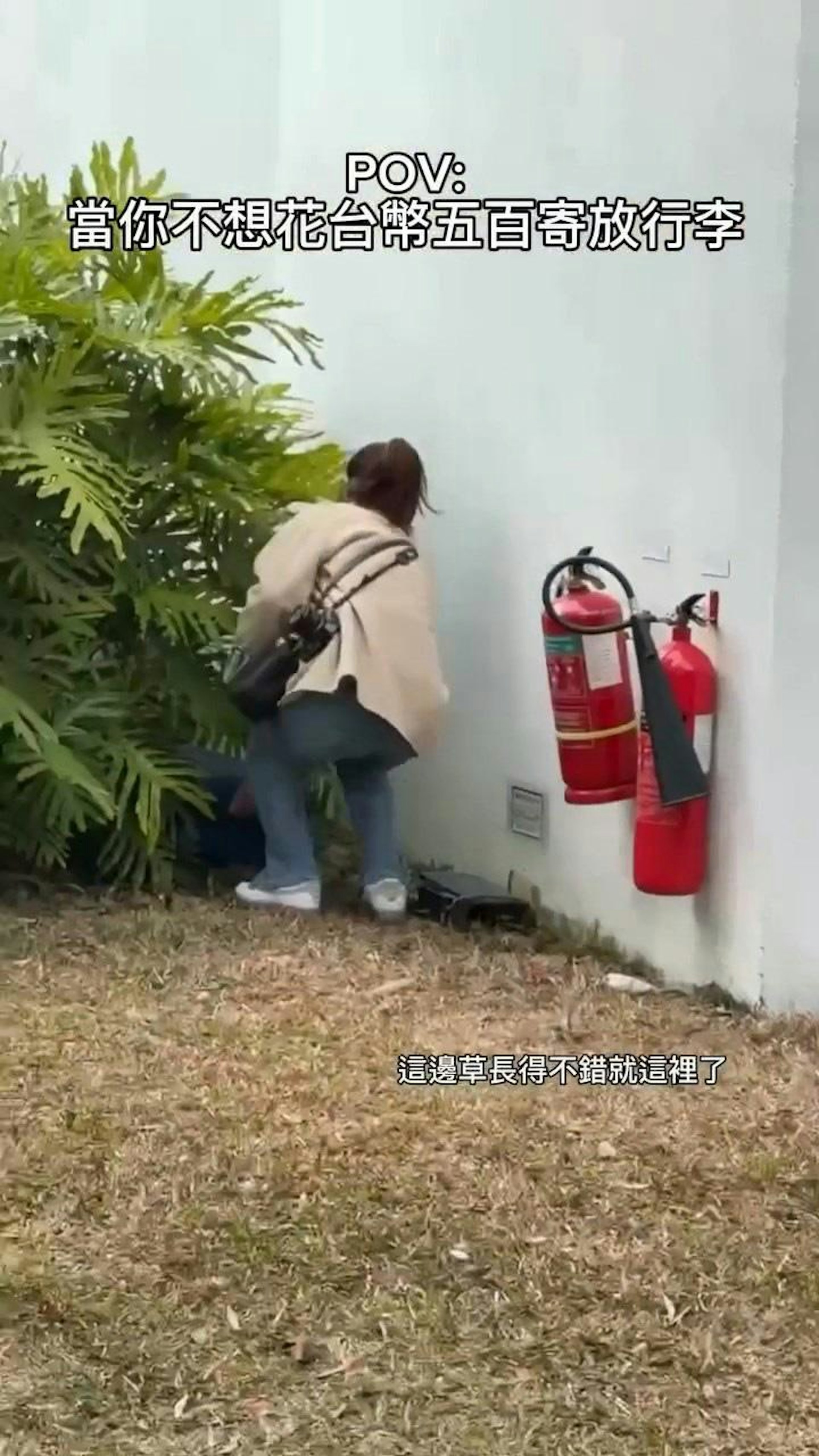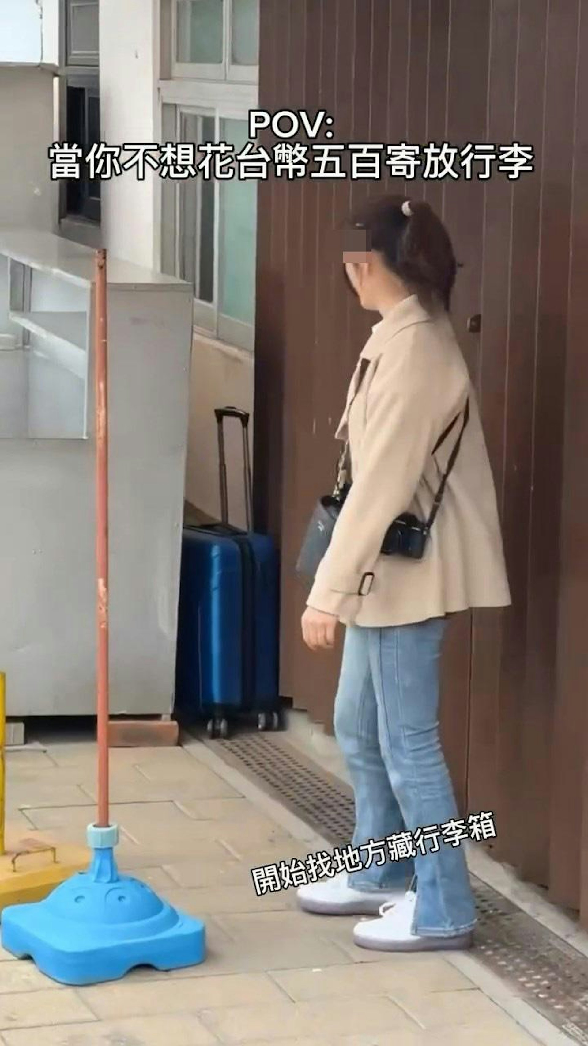 - u7 i9 n' w0 ~7 b/ D b7 O+ N" [# r台女一開始先嘗試把行李篋藏在雜貨店外角落處,但認為效果不好。(threads影片)