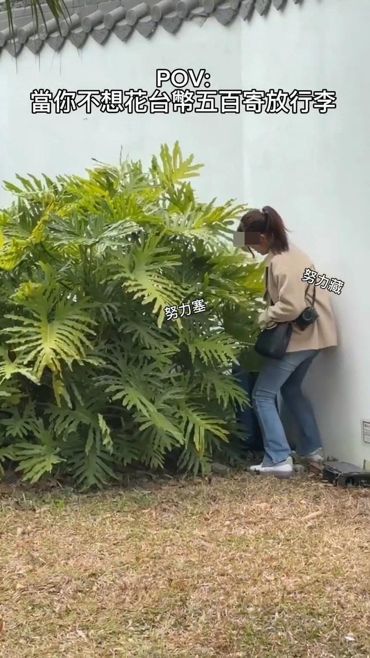 旅遊為了「省錢」,可以去到幾盡?該名台灣女生於2月15日(星期六)在社交平台threads發布影片,講述在香港大嶼山天壇大佛旅遊時「草叢藏行李」經歷,明言「唐山過台灣沒半點錢,說的就是我。要我花100港幣(將近500台幣)寄放行李是不可能的」,又稱「來自(台灣)中壢的客家人要發揮客家精神到香港」。