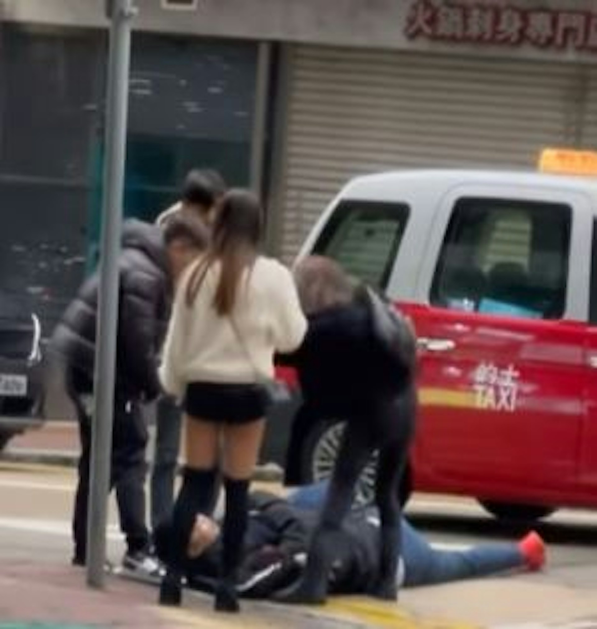 其後身穿杏色衛衣及黑色羽絨外套的男子先後用腳踩的士司機的背部,試圖為黑衫男解圍,惟的士司機即使受襲仍不放手。隨後在旁的黑衫女子用力扯著的士司機的頭髮,想分開兩人,不過的士司機死命箍著黑衫男。杏衫男不忿,又再踢的士司機一腳,此時黑衫女子見狀制止:「喂呀,你夠啦。」TVBNOW 含有熱門話題,最新最快電視,軟體,遊戲,電影,動漫及日常生活及興趣交流等資訊。4 U4 C% I6 k& s- q& W$ u" ^