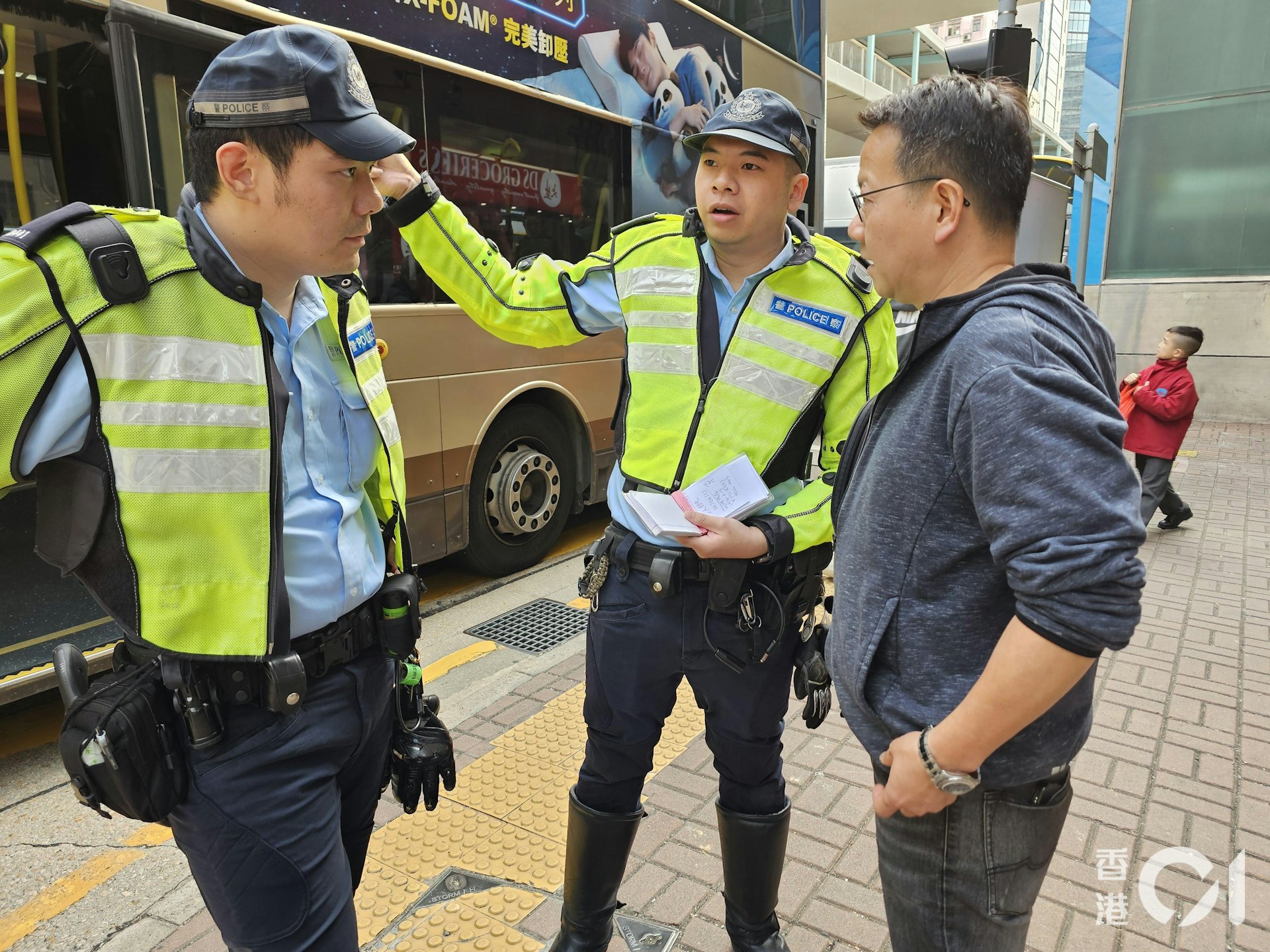 2 P/ s, k( r8 ~- ~公仔箱論壇男乘客在場協助調查。(梁偉權攝)
