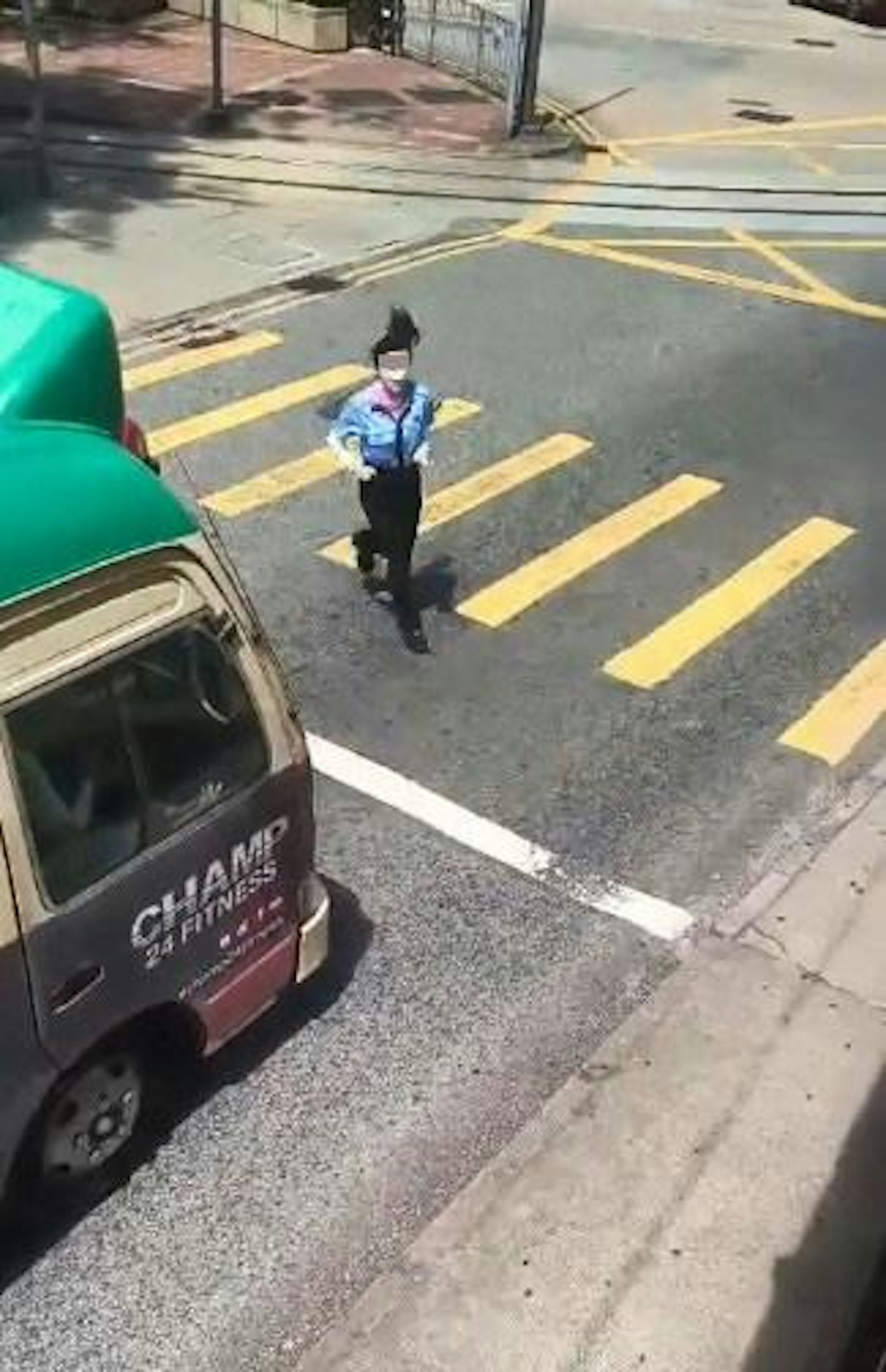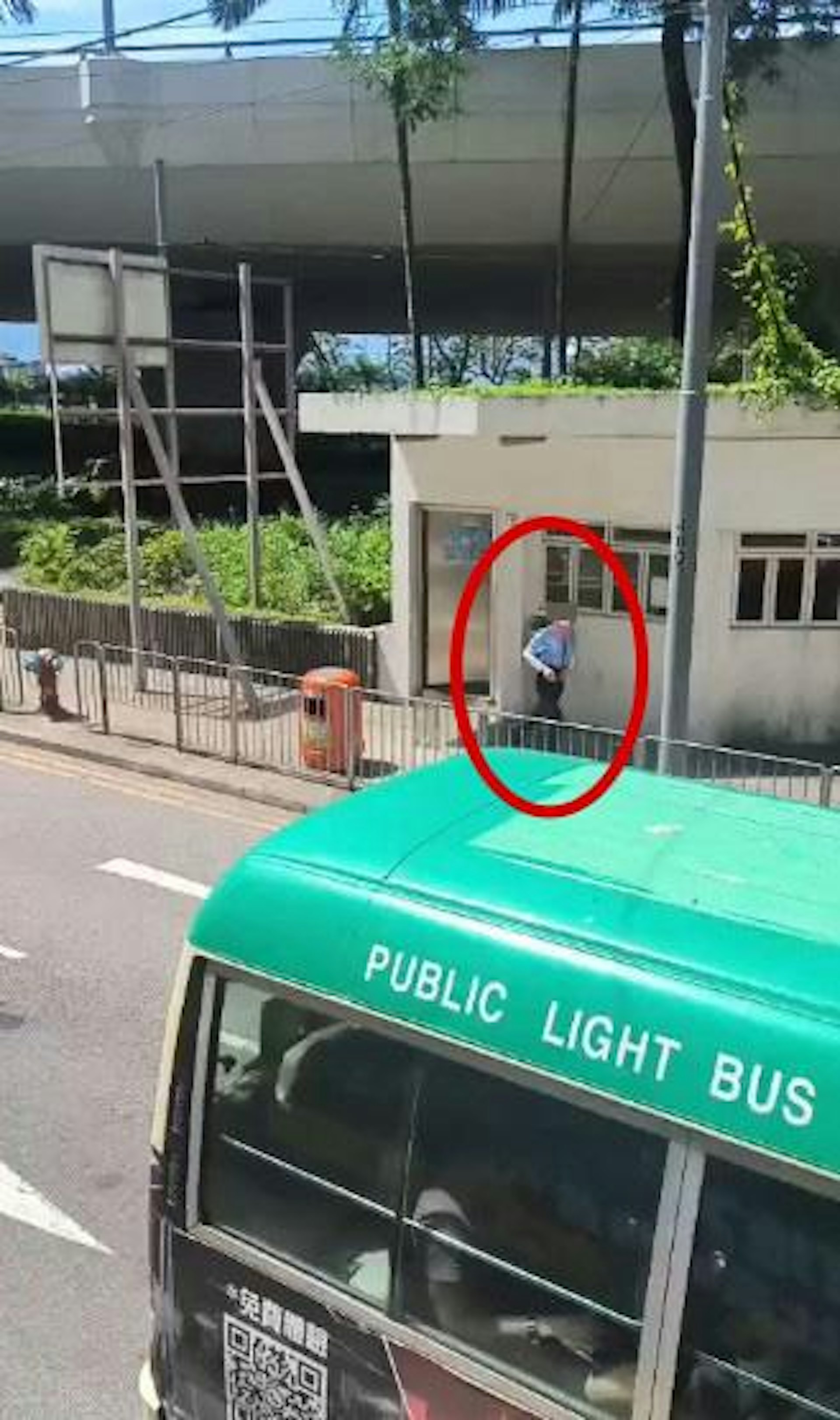 2 V2 }& b$ j: n公仔箱論壇一名電車女車長正從站長室離開,並急步跑回電車上。(facebook影片截圖)
